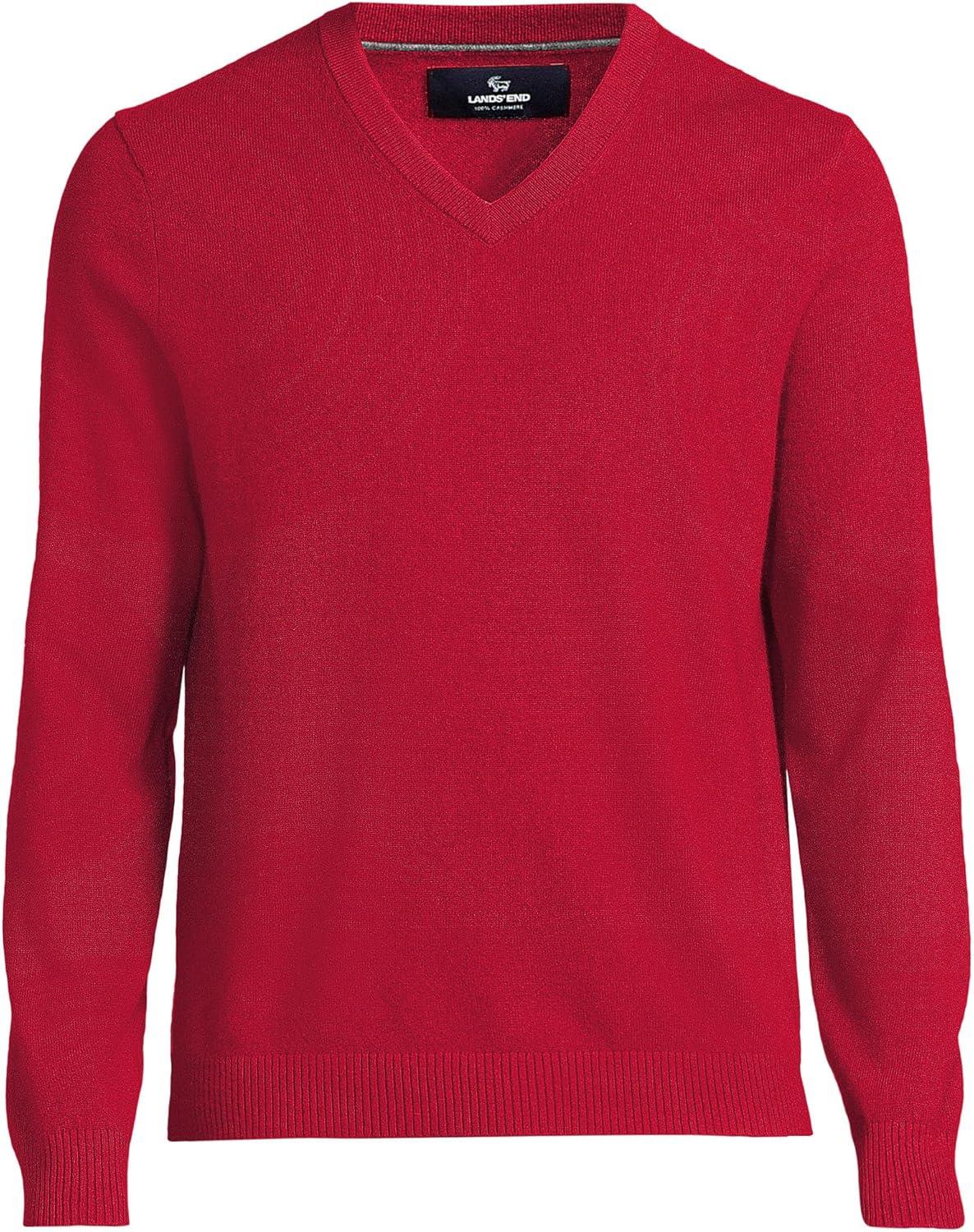 Lands’ End Men’s Fine Gauge Cashmere V-Neck Sweater(Current Red)