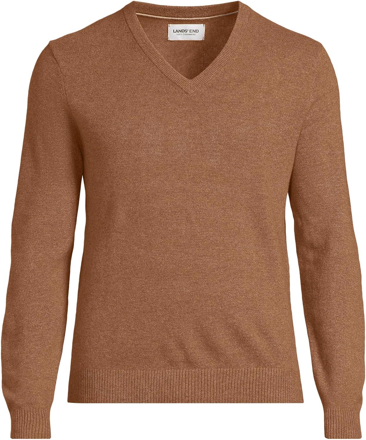 Lands’ End Men’s Fine Gauge Cashmere V-Neck Sweater(Fresh Nutmeg Heather)