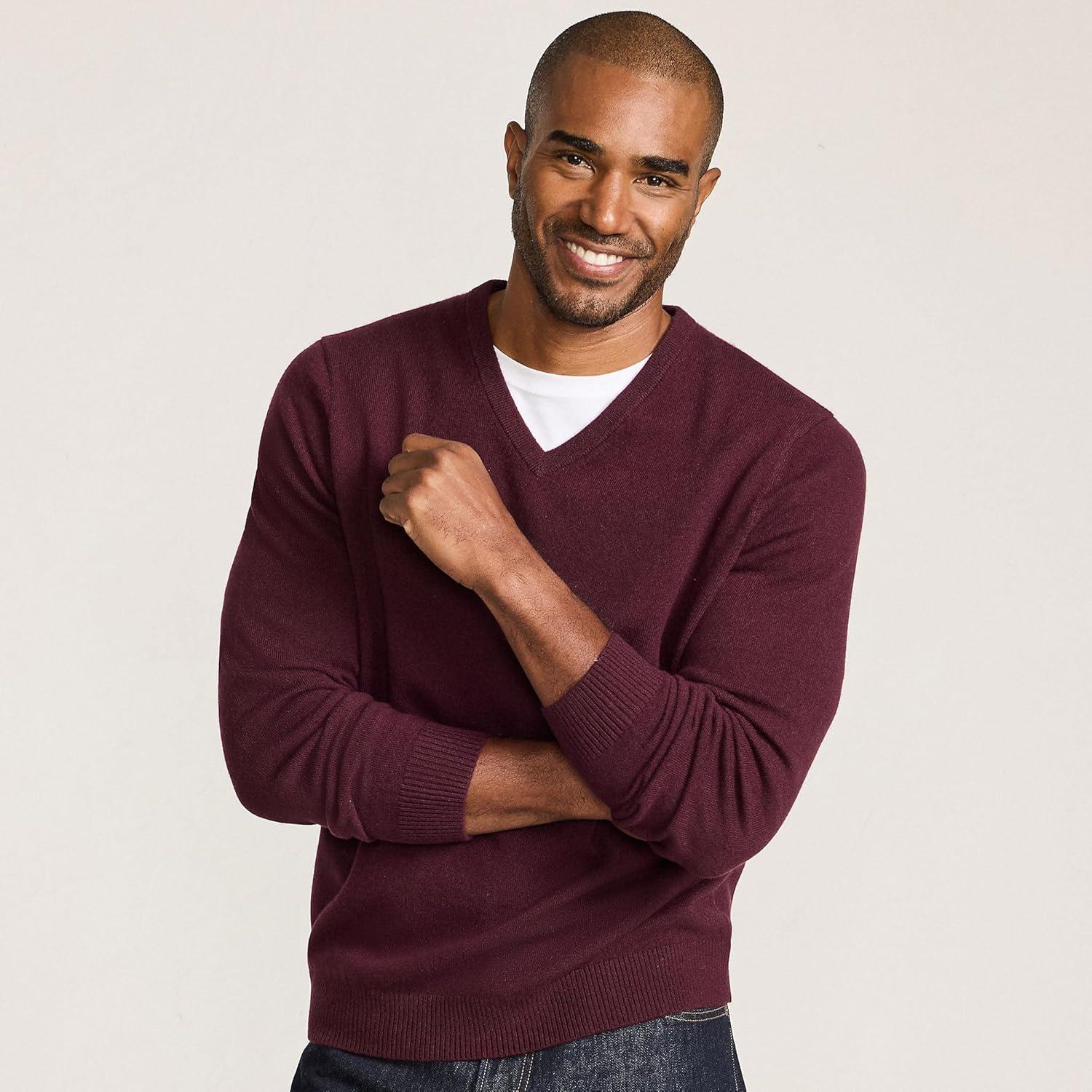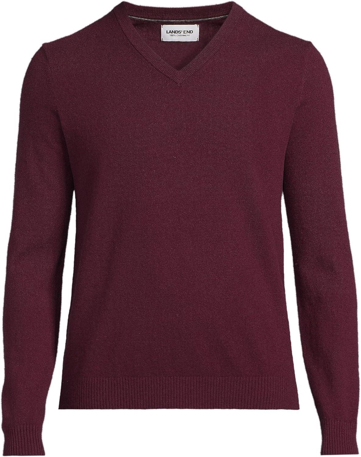Lands’ End Men’s Fine Gauge Cashmere V-Neck Sweater(Lush Burgundy)