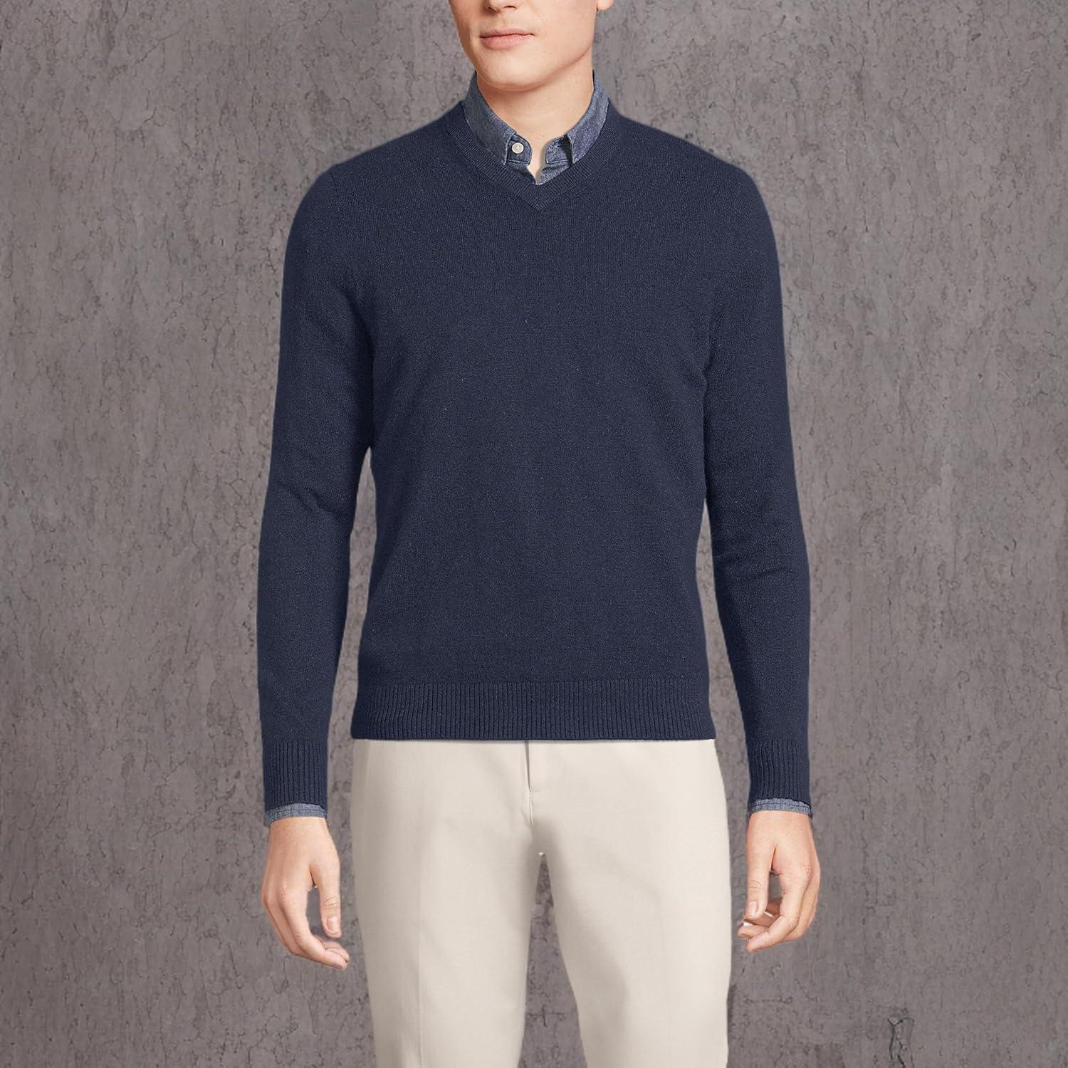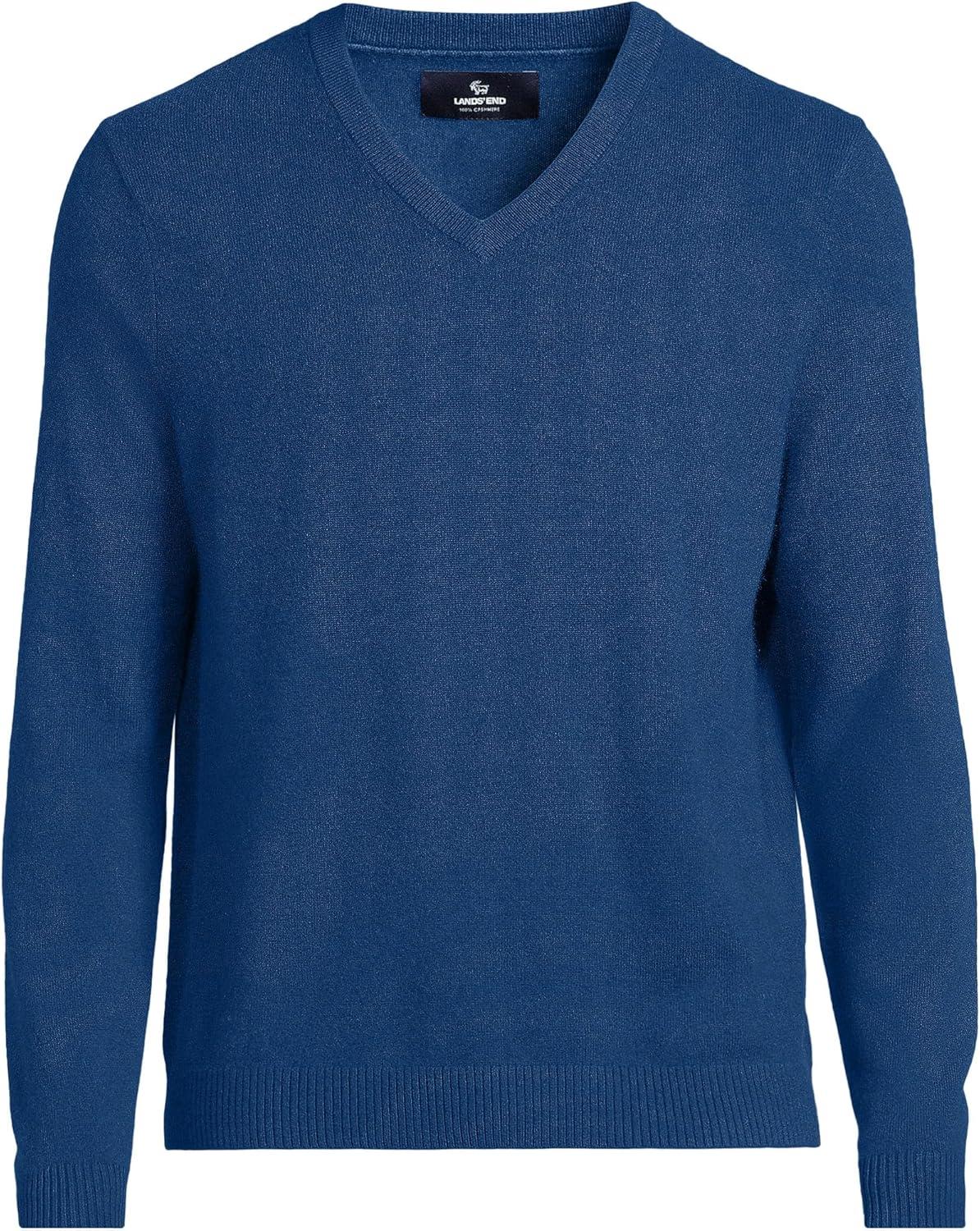 Lands’ End Men’s Fine Gauge Cashmere V-Neck Sweater(Radiant Navy)