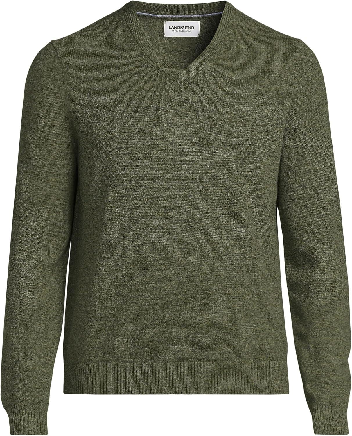 Lands’ End Men’s Fine Gauge Cashmere V-Neck Sweater(Wildwood Moss Heather)