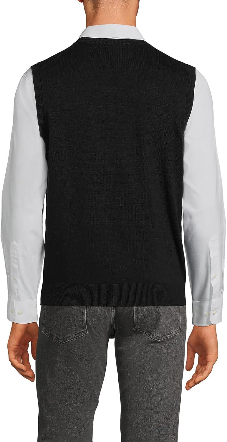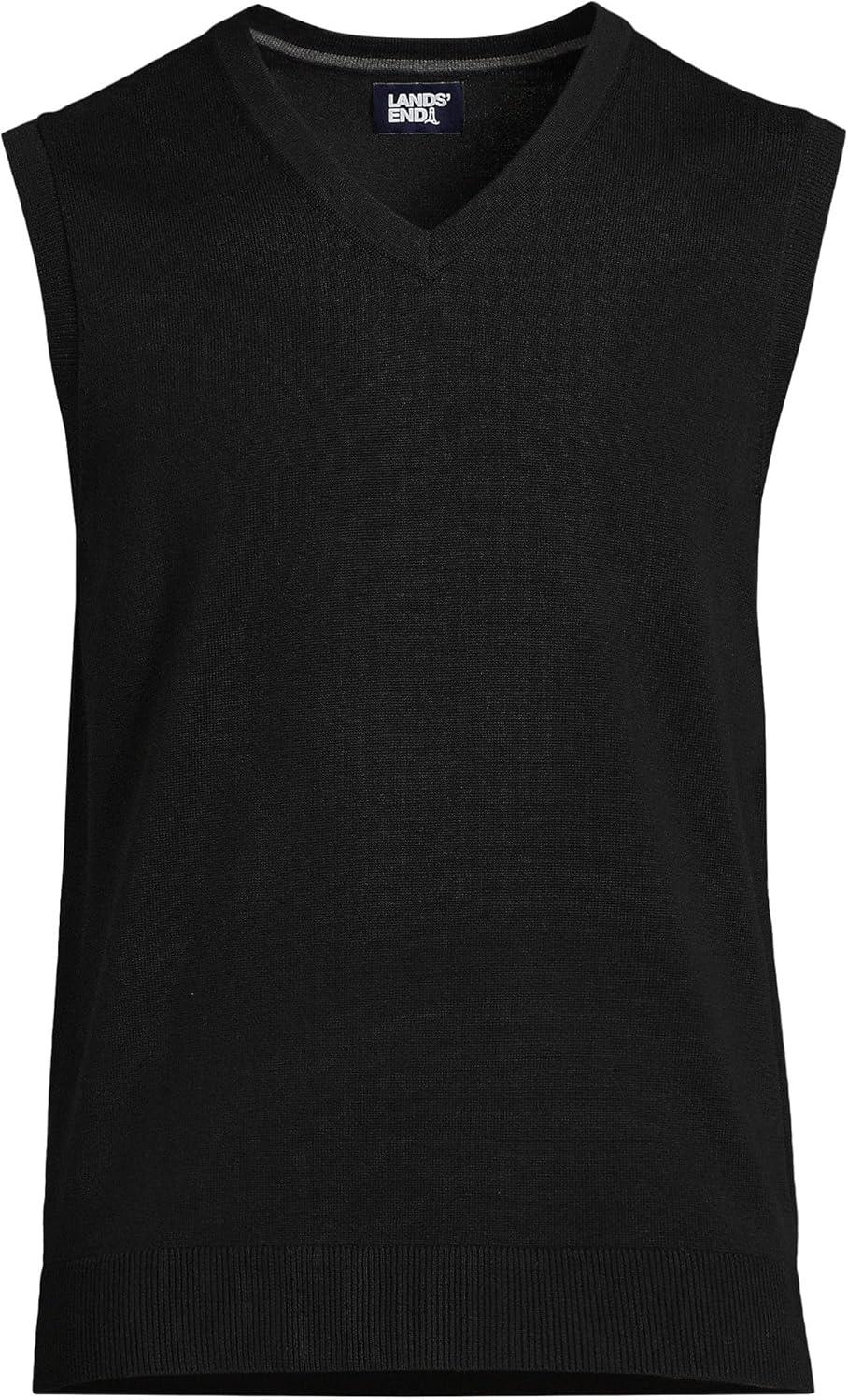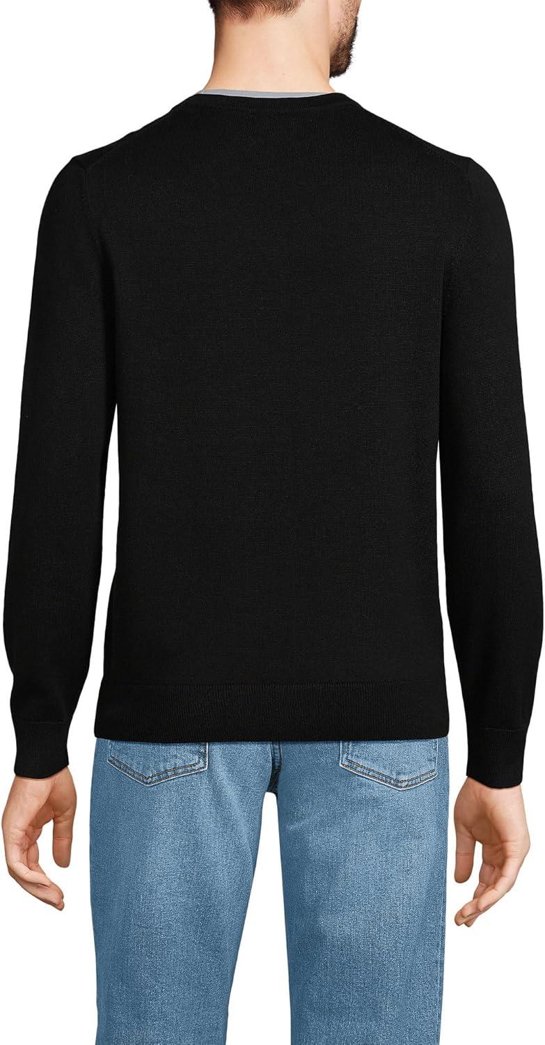 Lands’ End Men’s Fine Gauge Cotton V Neck Sweater(Black)