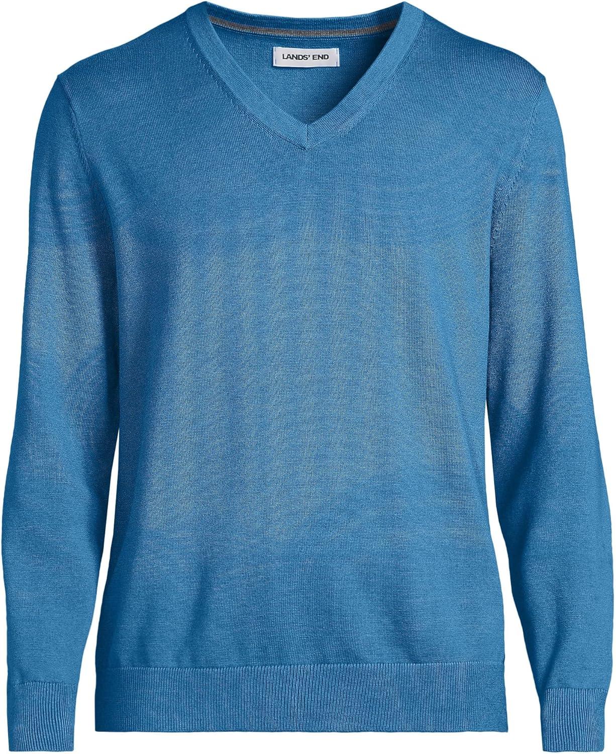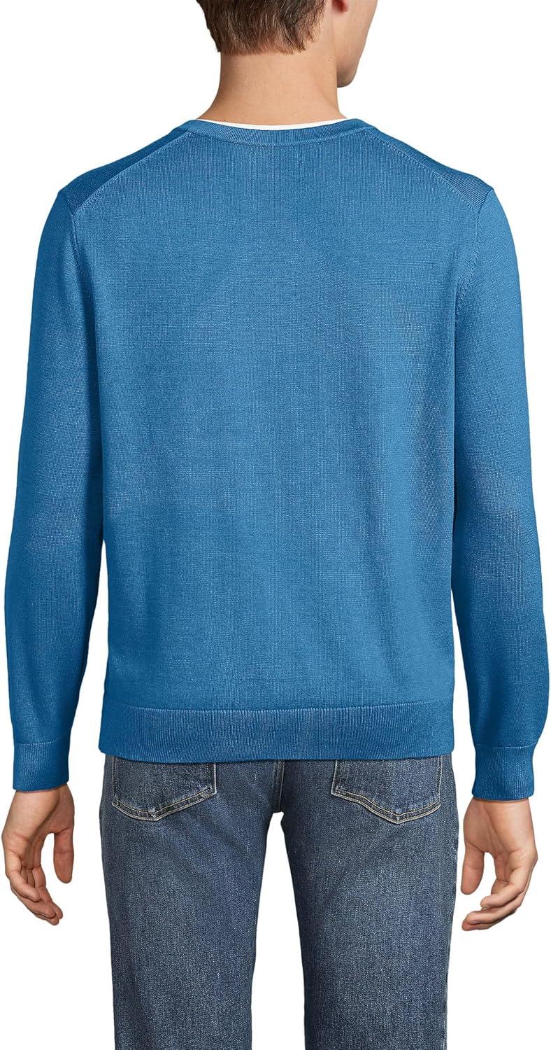 Lands’ End Men’s Fine Gauge Cotton V Neck Sweater(Blue Hyacinth)
