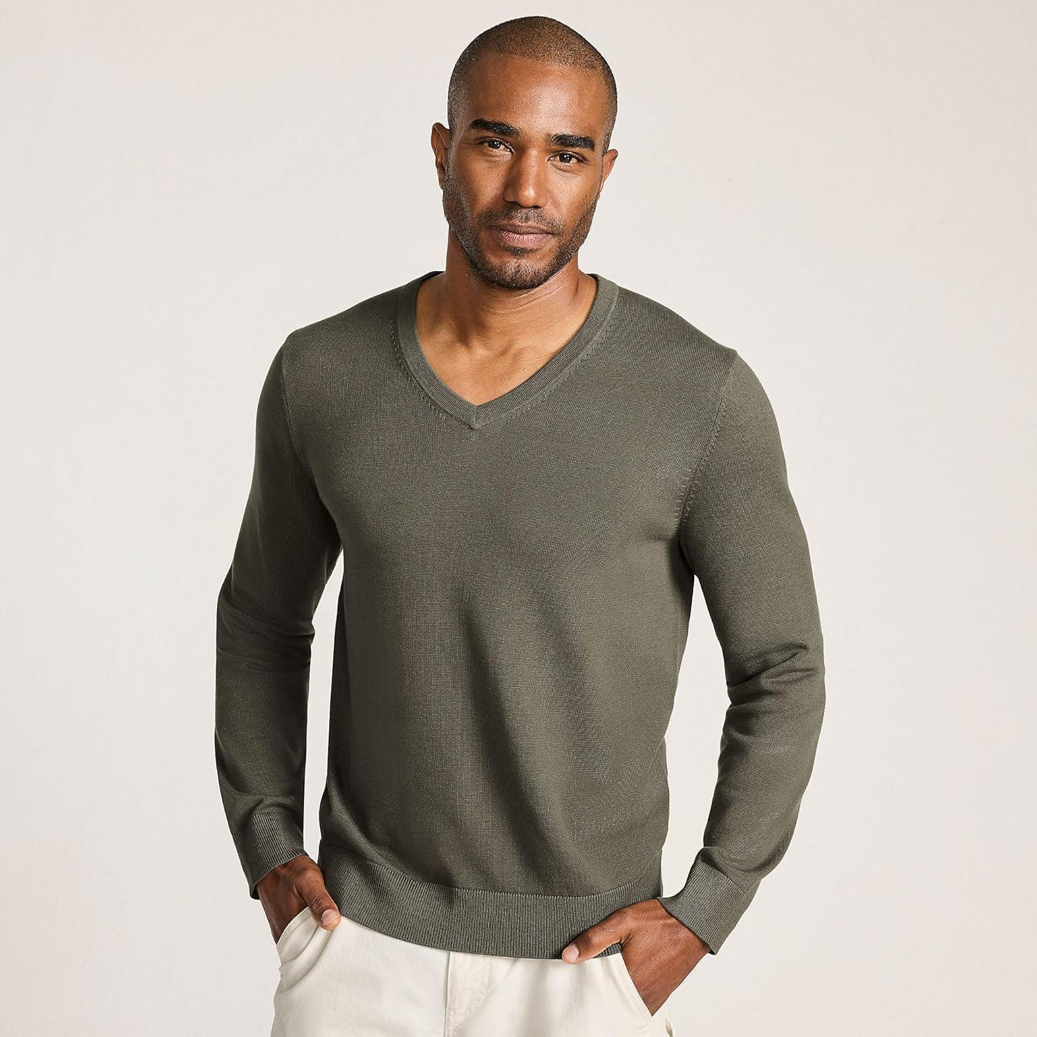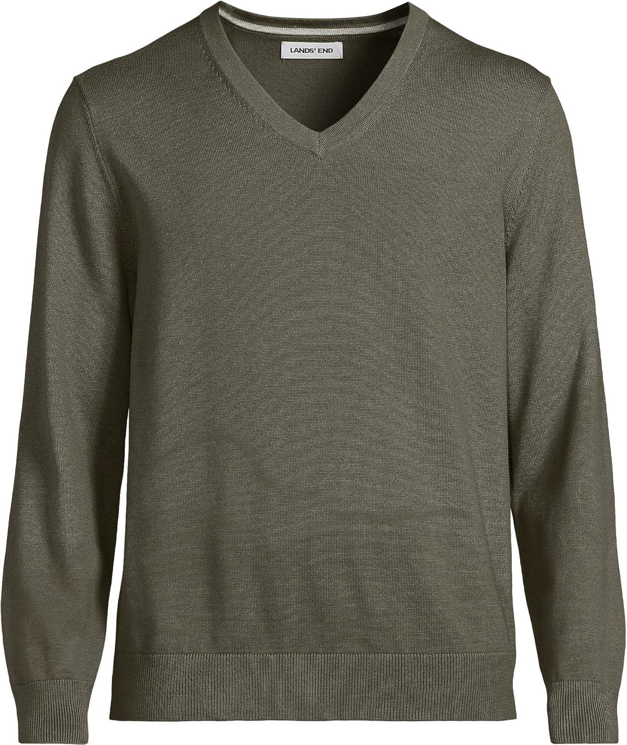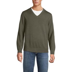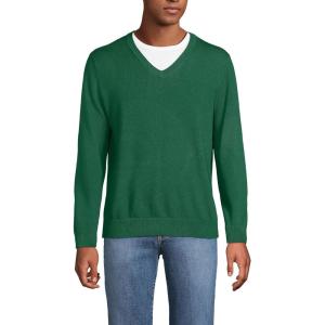 Lands’ End Men’s Fine Gauge Cotton V Neck Sweater(Forest Moss)