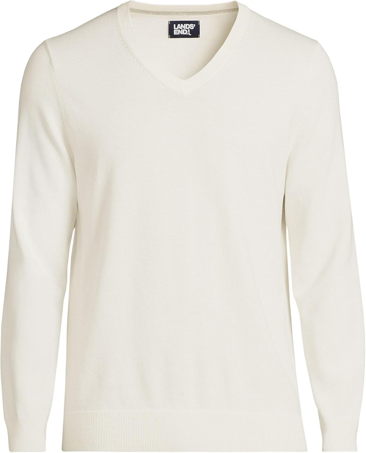 Lands’ End Men’s Fine Gauge Cotton V Neck Sweater(Ivory)