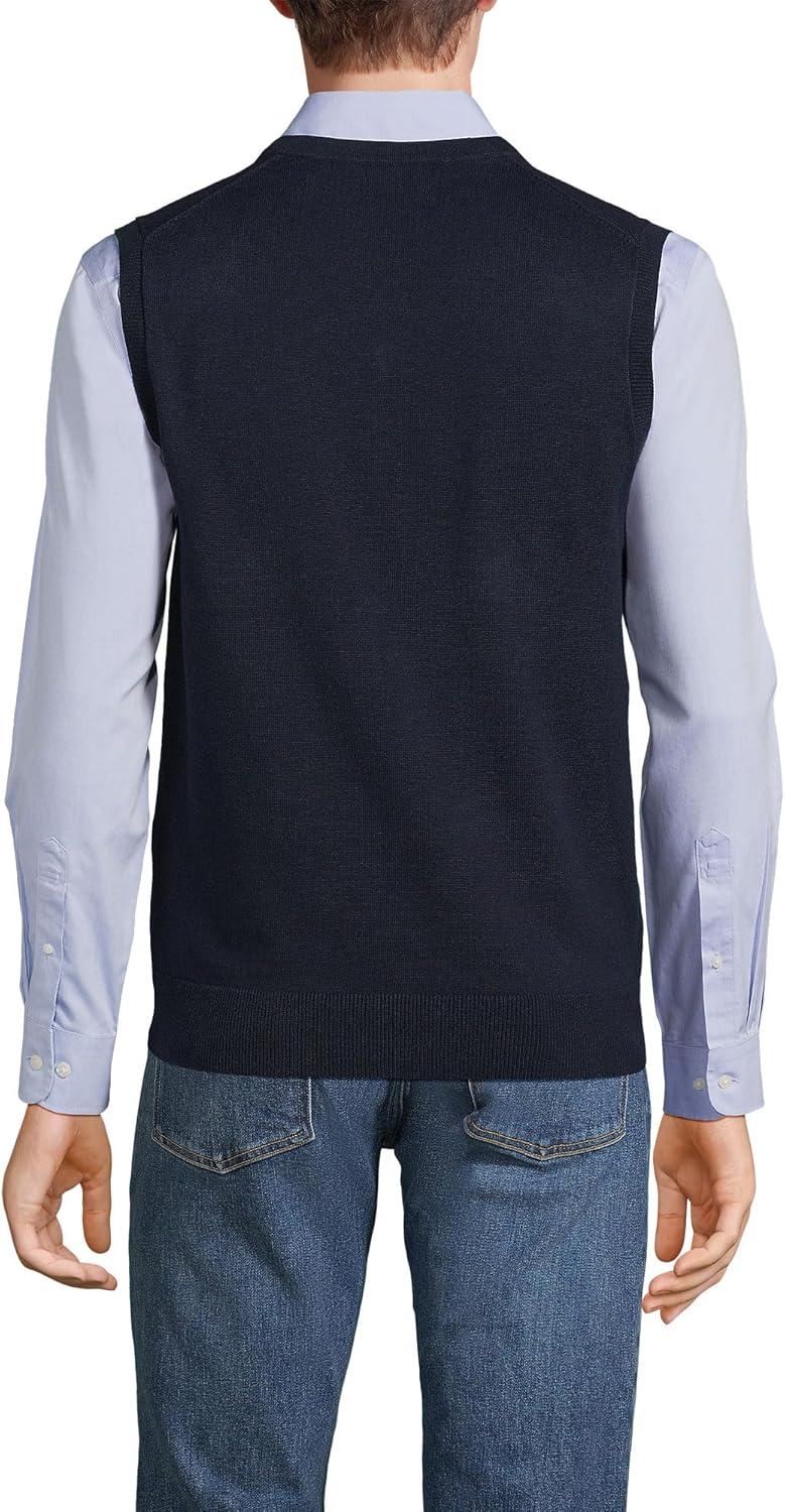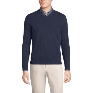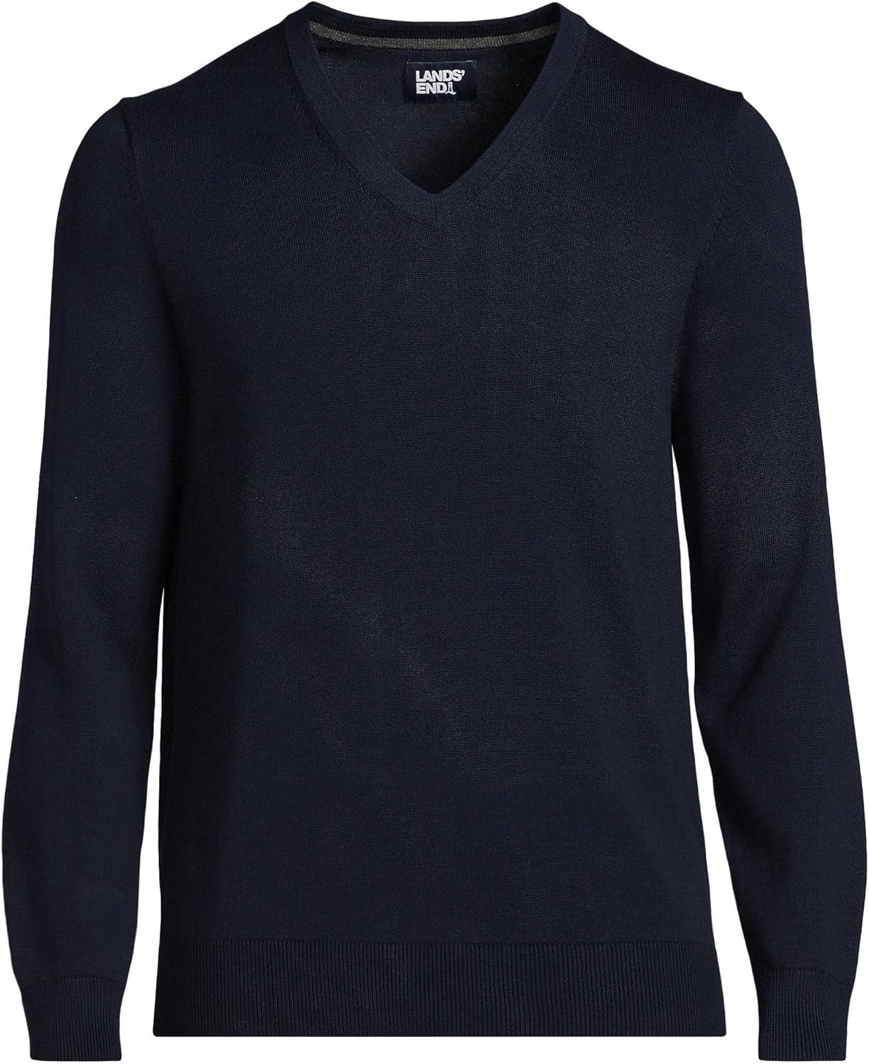 Lands’ End Men’s Fine Gauge Cotton V Neck Sweater(Radiant Navy)