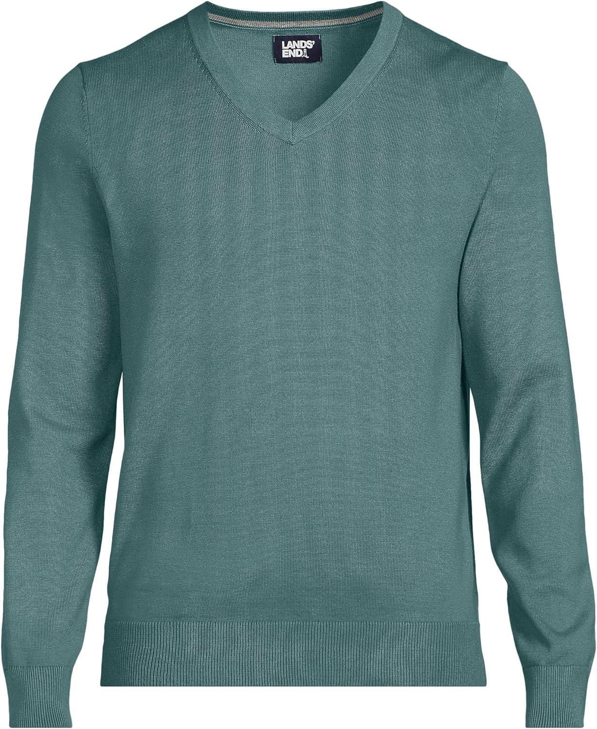 Lands’ End Men’s Fine Gauge Cotton V Neck Sweater(Tourmaline)