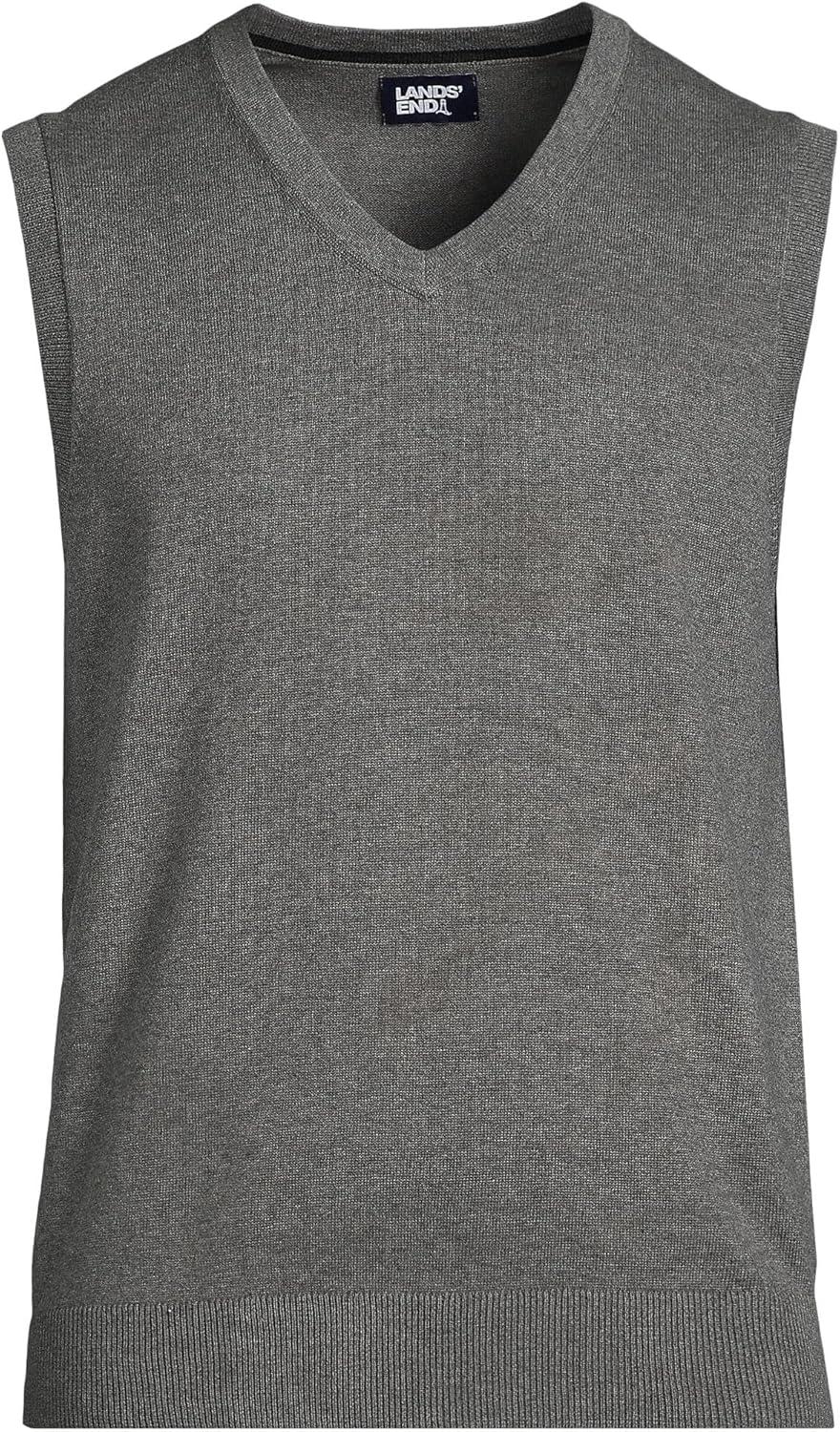 Lands’ End Men’s Fine Gauge Cotton Vest(Charcoal Heather)