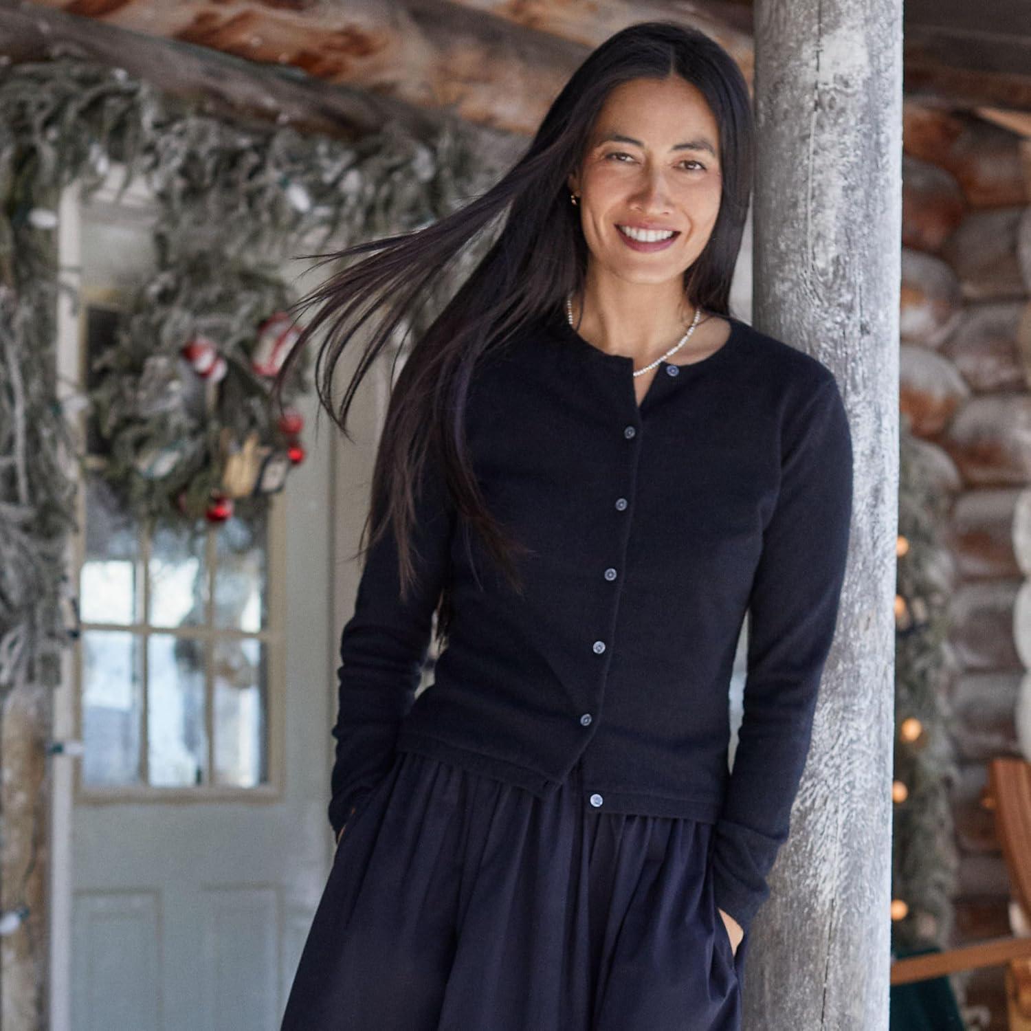 Lands’ End Women’s Cashmere Cardigan Sweater(Black)