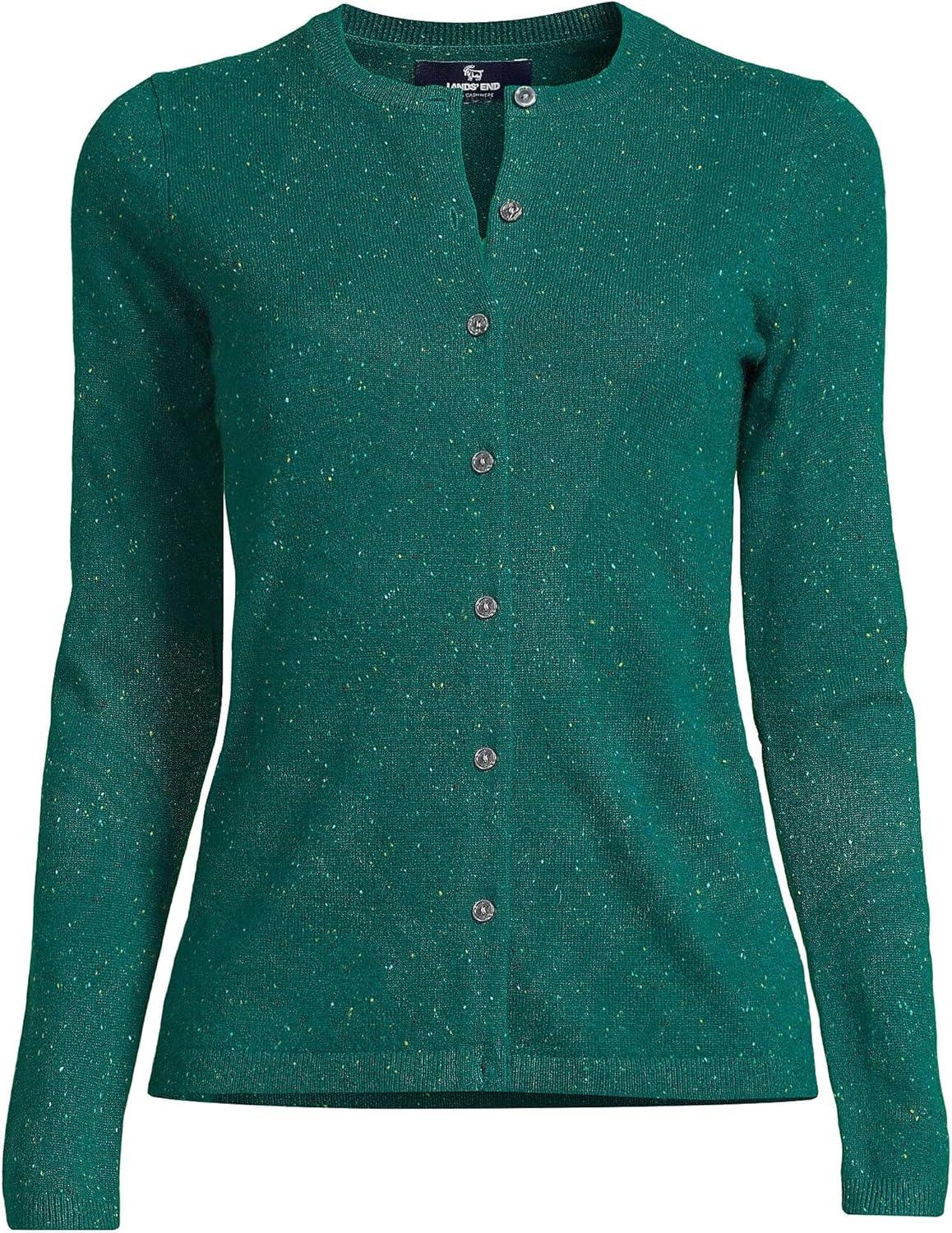 Lands’ End Women’s Cashmere Cardigan Sweater(Bright Evergreen Donegal)