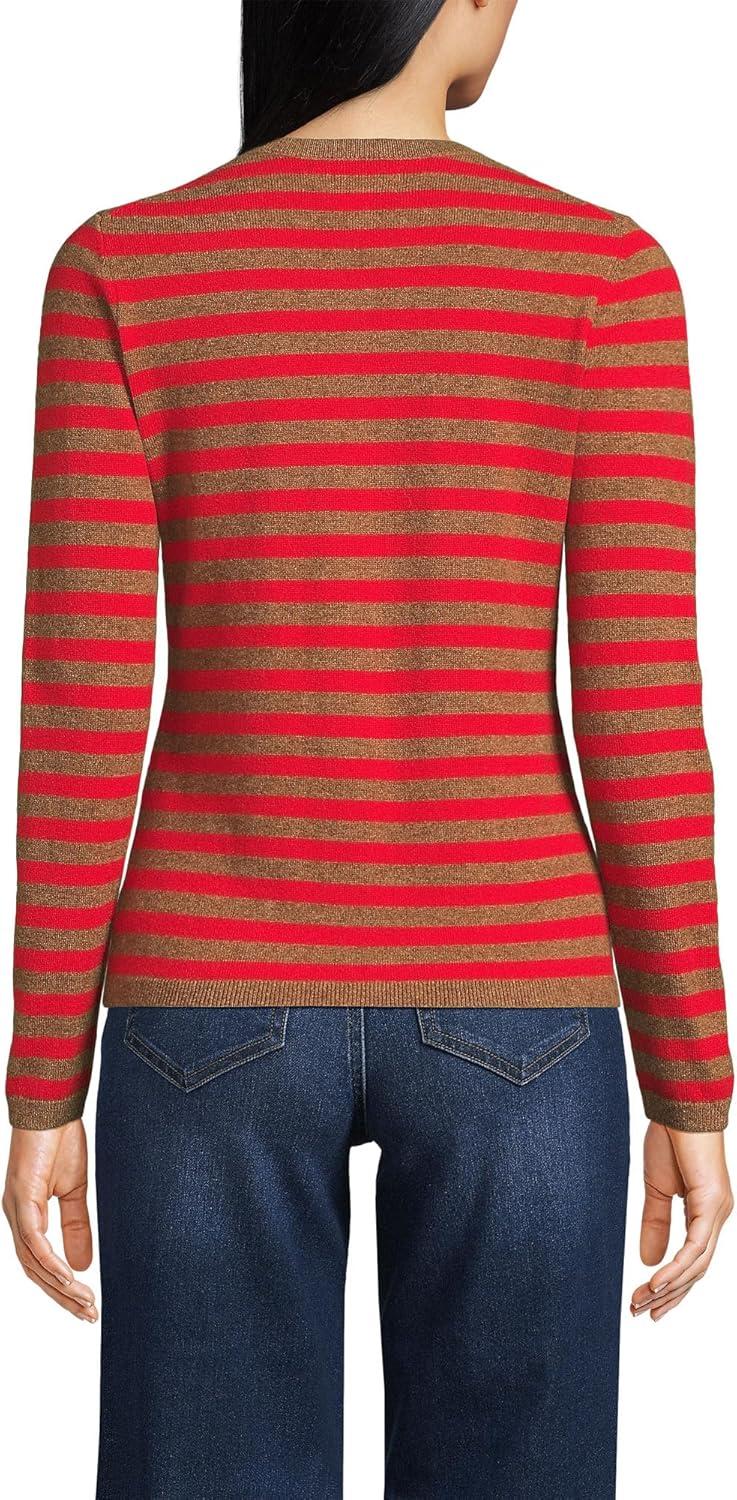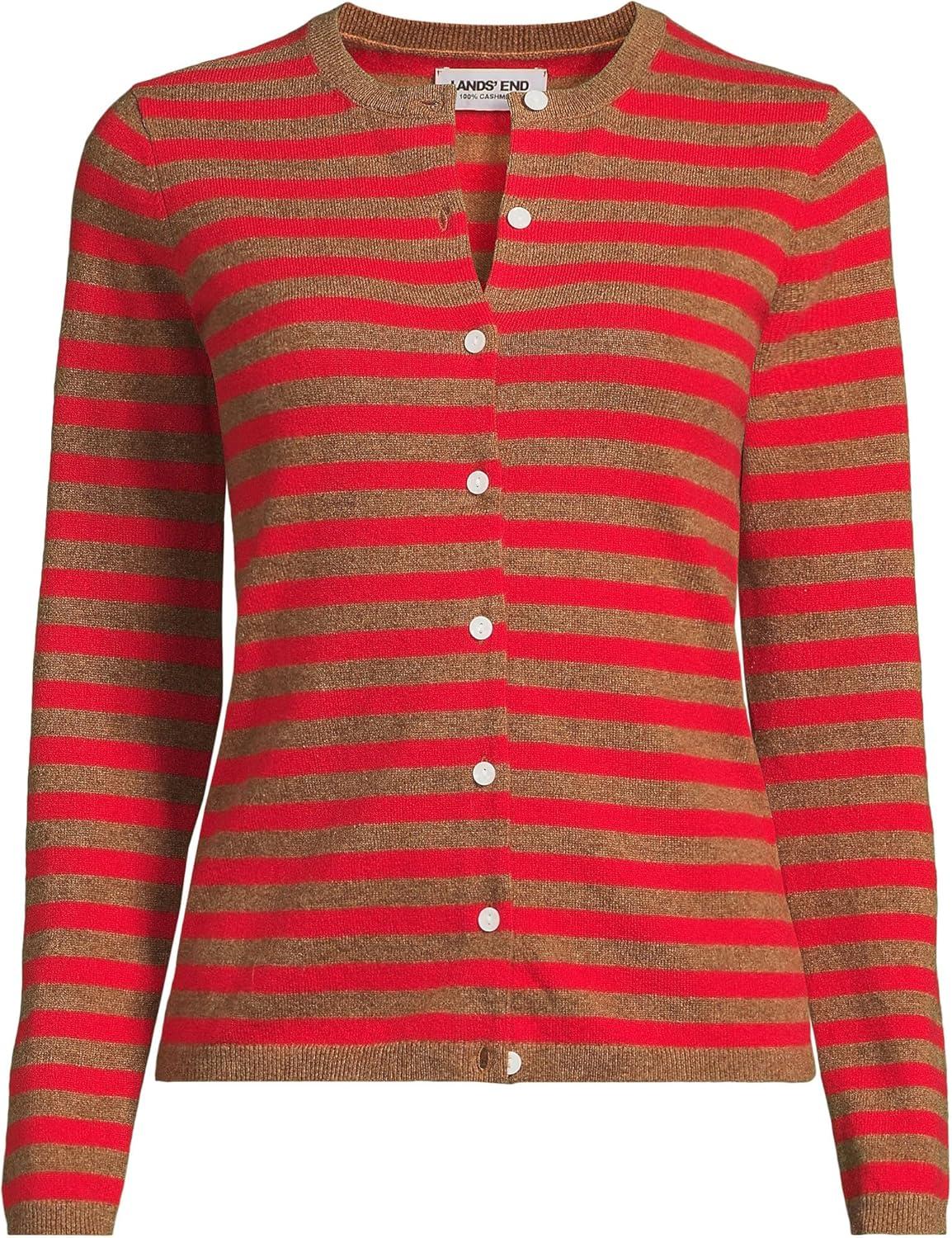 Lands’ End Women’s Cashmere Cardigan Sweater(Compass Red/Camel Breton)