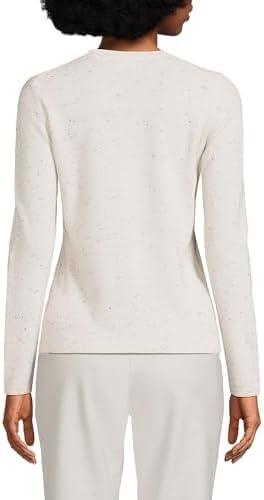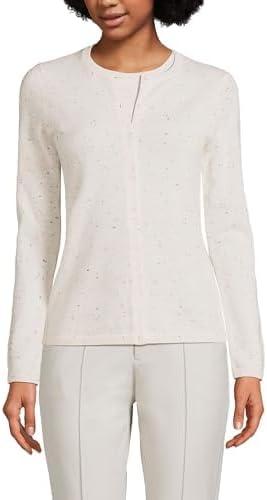 Lands’ End Women’s Cashmere Cardigan Sweater(Fresh Ivory Rainbow Donegal)
