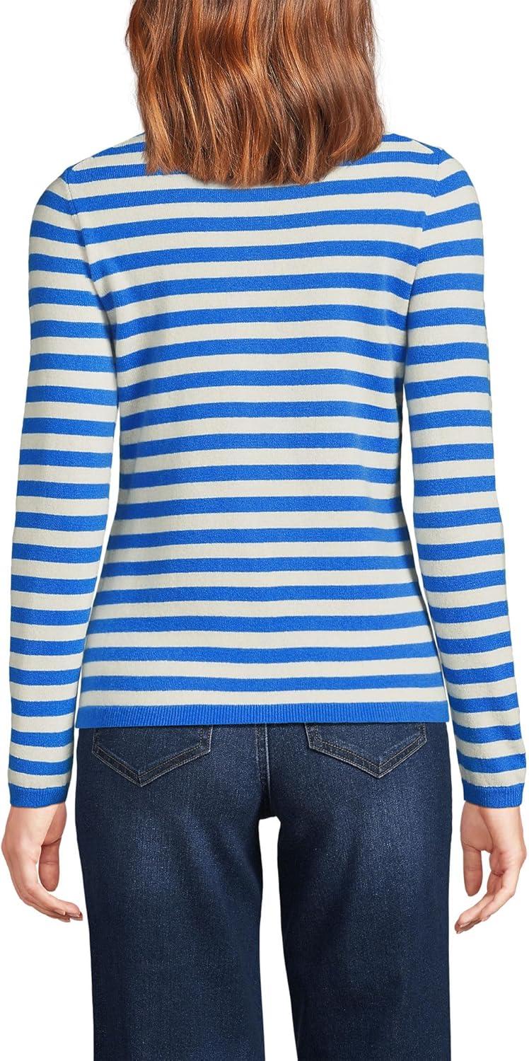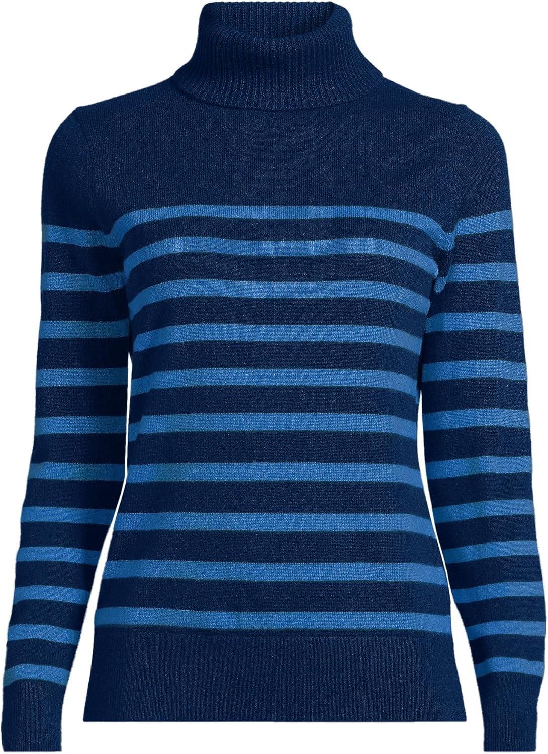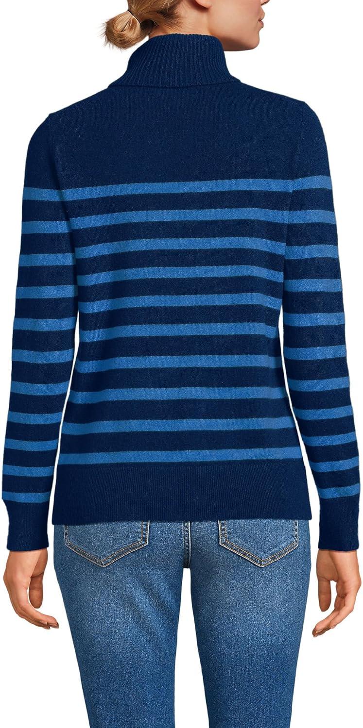 Lands’ End Women’s Cashmere Turtleneck Sweater(Deep Sea Navy/Aqua Stripe)