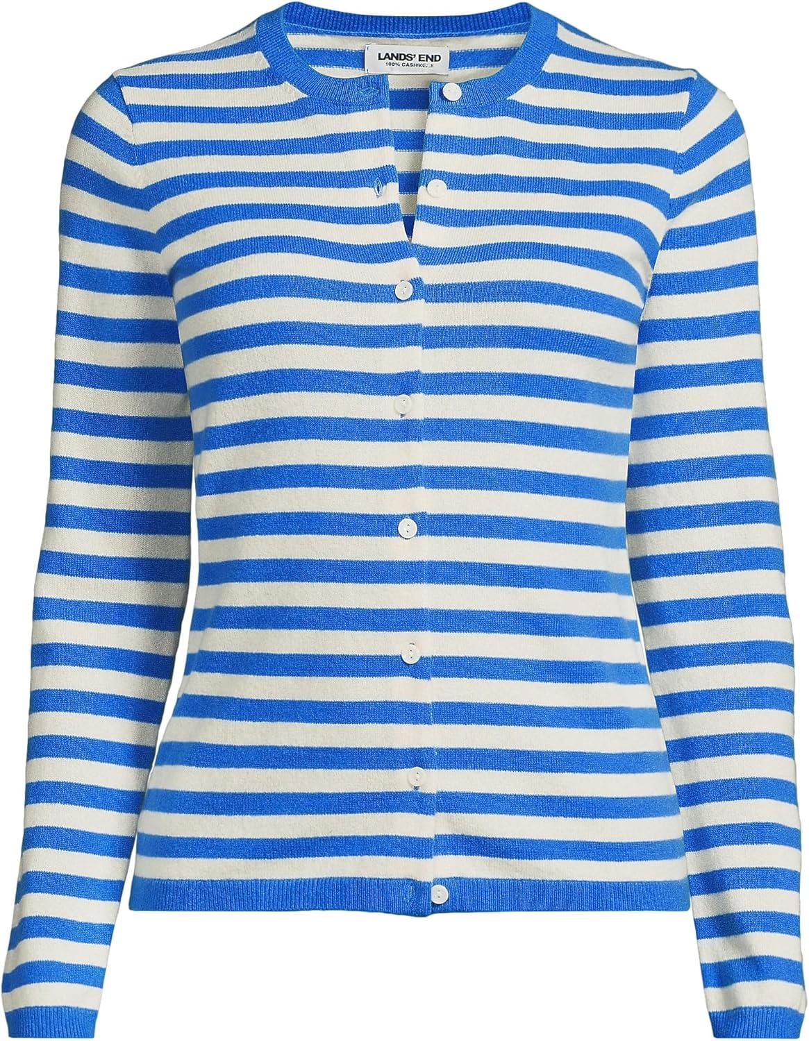 Lands’ End Women’s Cashmere Cardigan Sweater(Muted Cobalt/Ivory Breton)