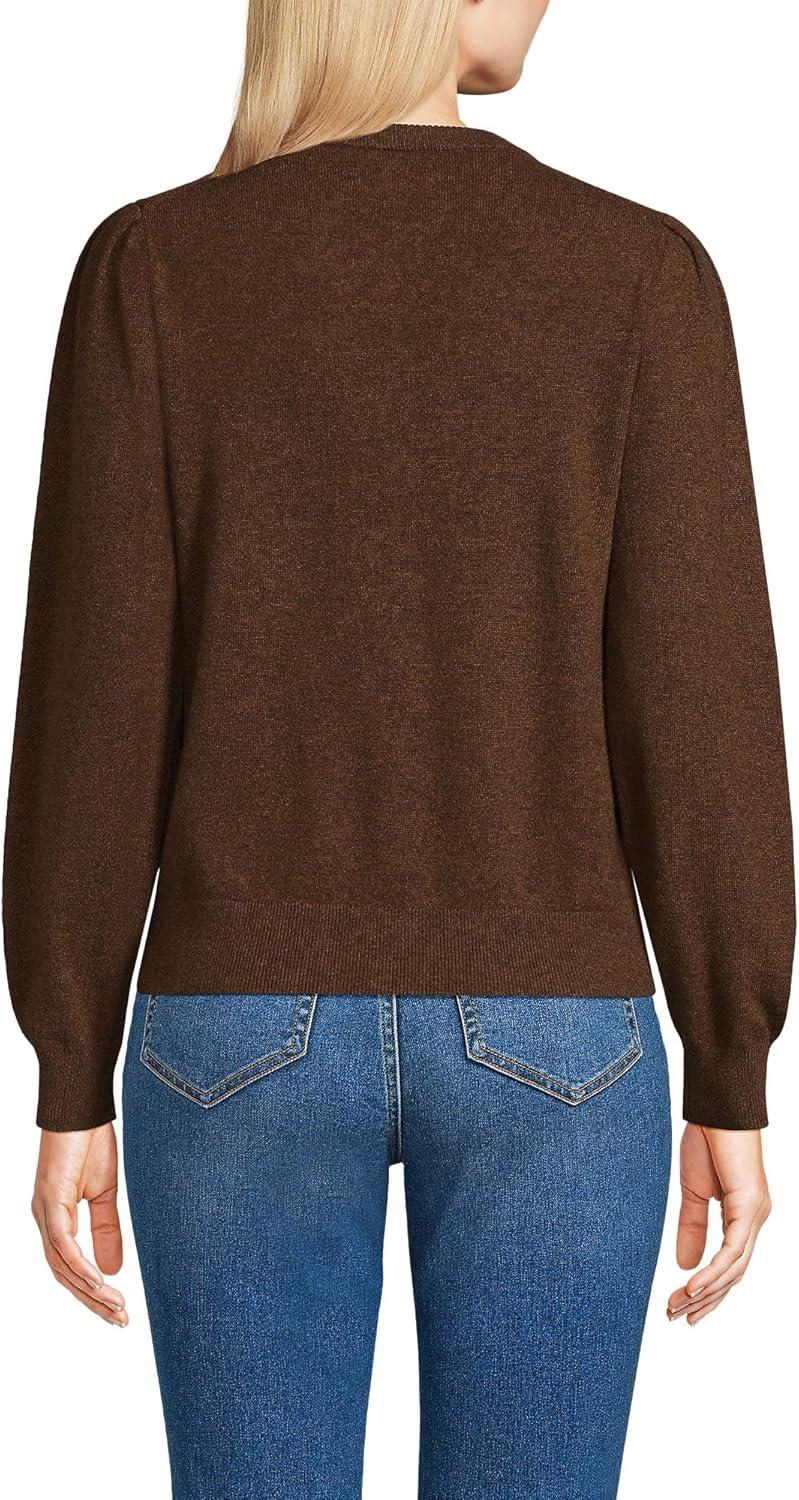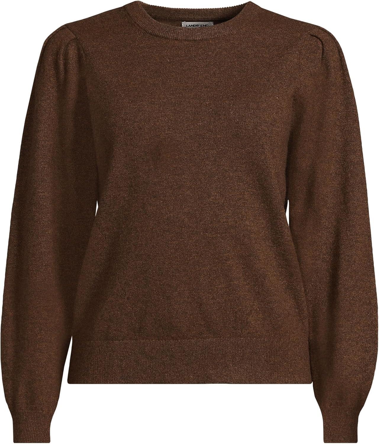 Lands’ End Women’s Cashmere Puff Sleeve Crew Neck Sweater(Dark Carob Heather)