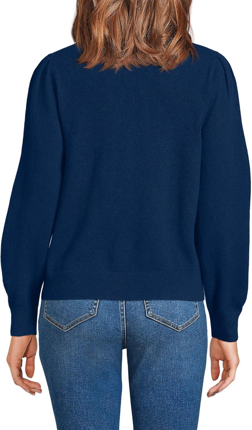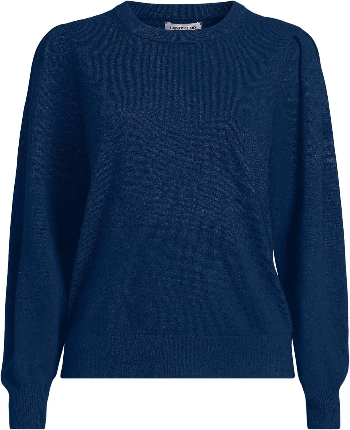 Lands’ End Women’s Cashmere Puff Sleeve Crew Neck Sweater(Deep Sea Navy)
