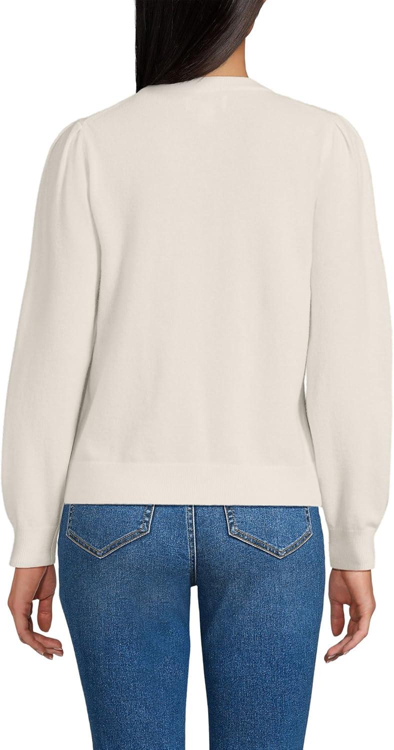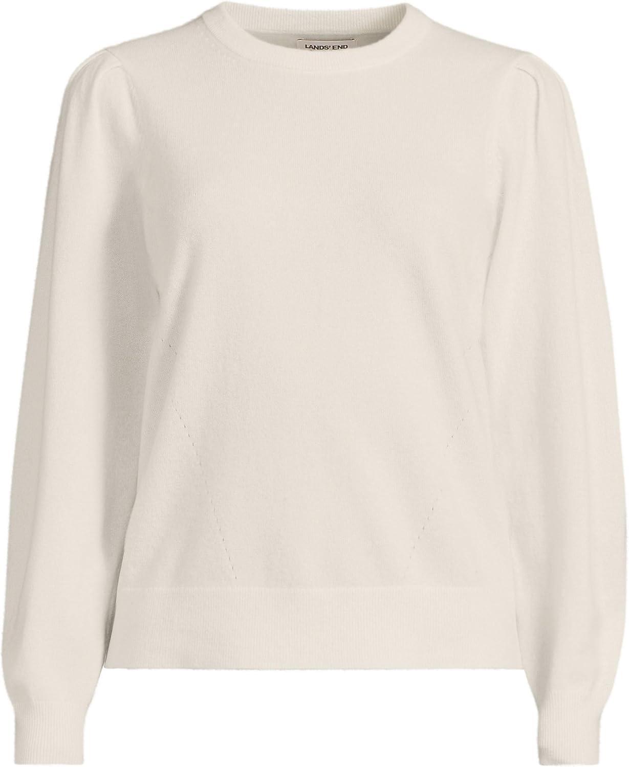 Lands’ End Women’s Cashmere Puff Sleeve Crew Neck Sweater(Fresh Ivory)