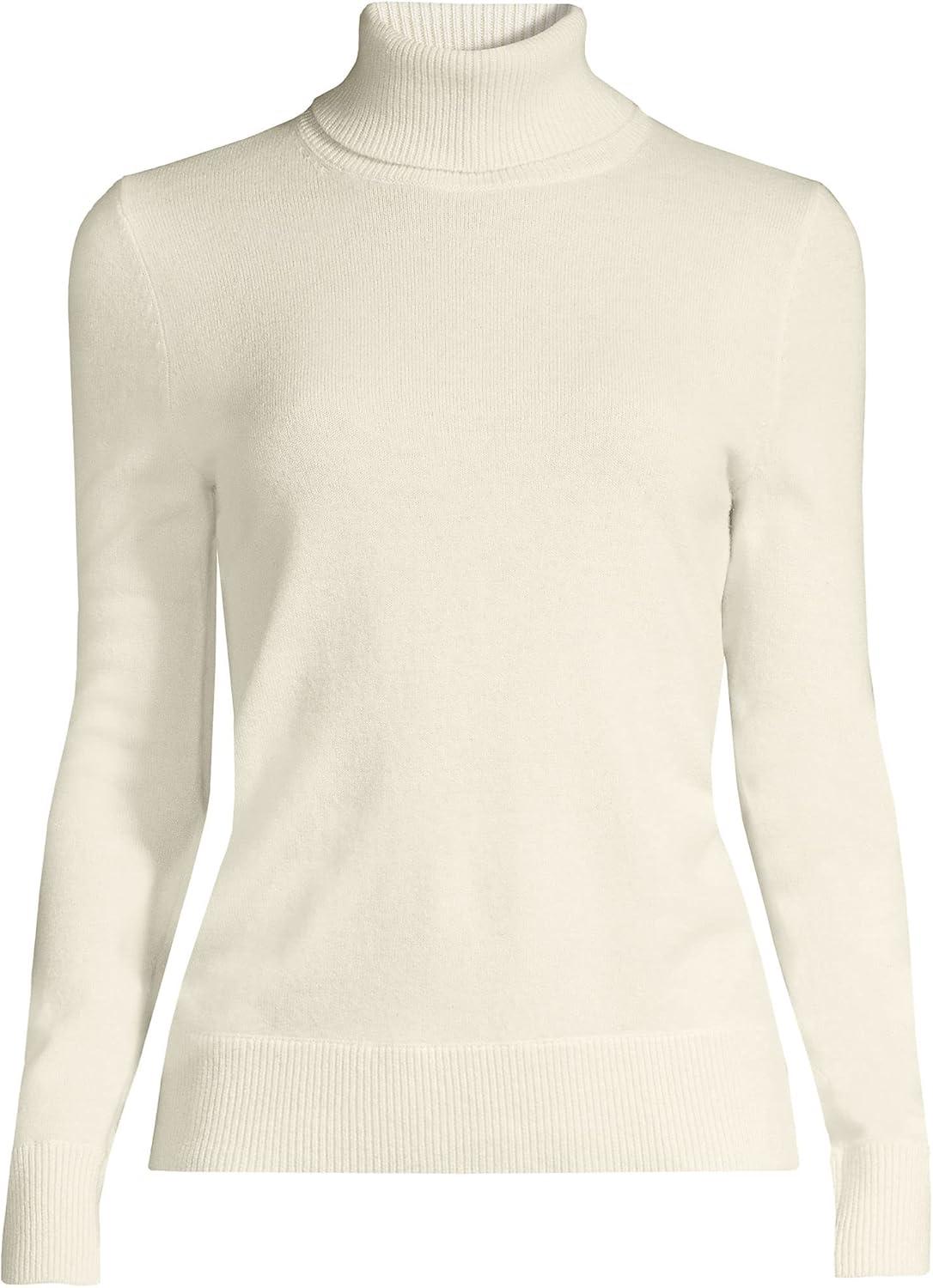 Lands’ End Women’s Cashmere Turtleneck Sweater(Fresh Ivory)