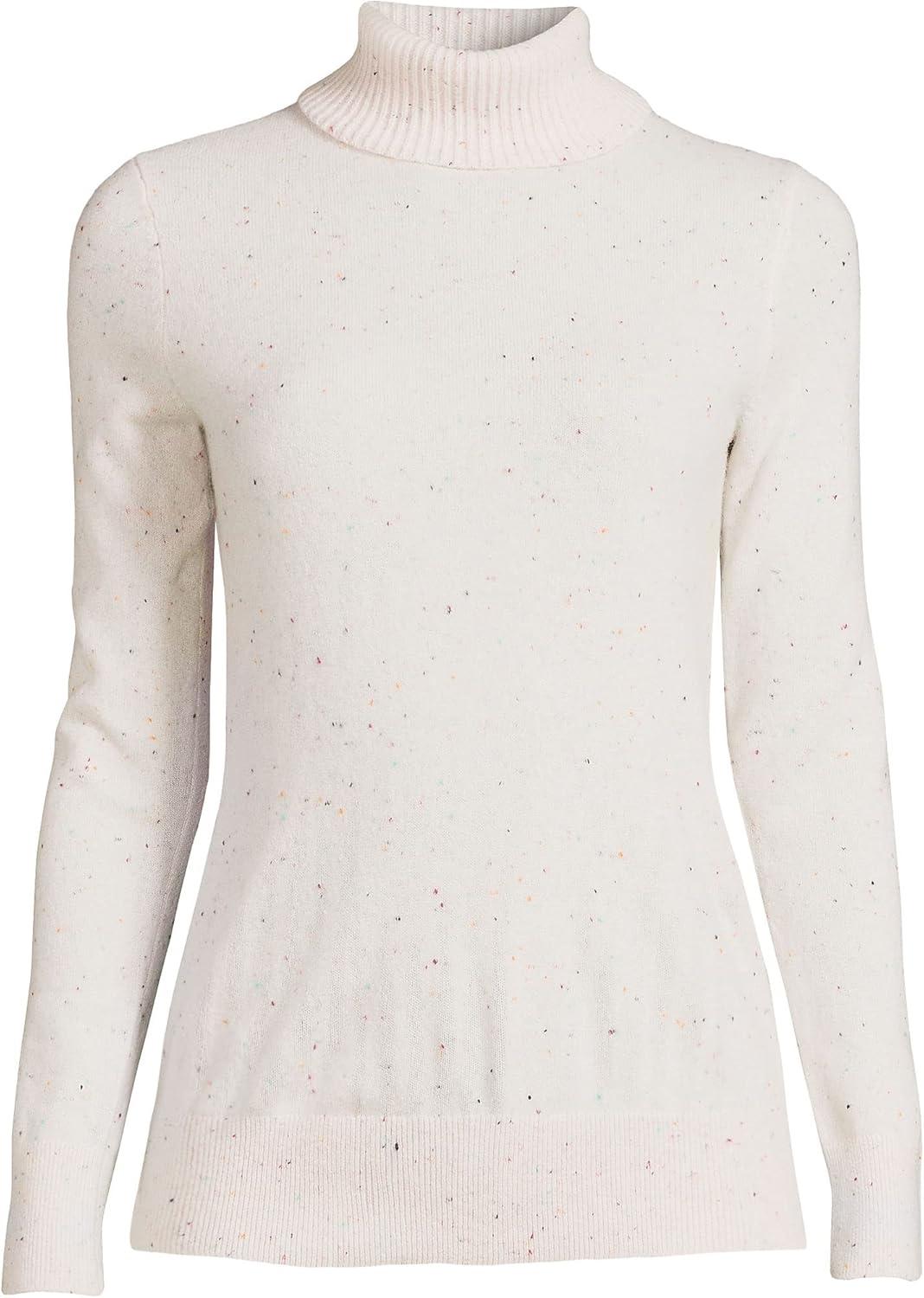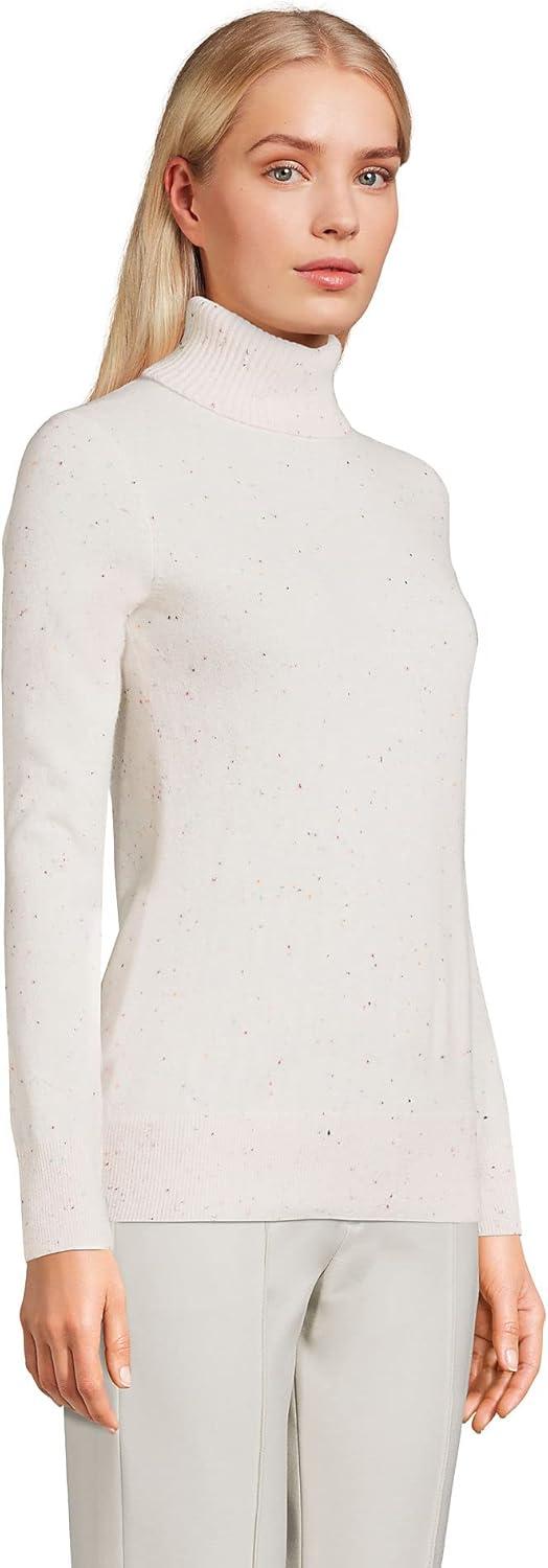 Lands’ End Women’s Cashmere Turtleneck Sweater(Fresh Ivory Rainbow Donegal)