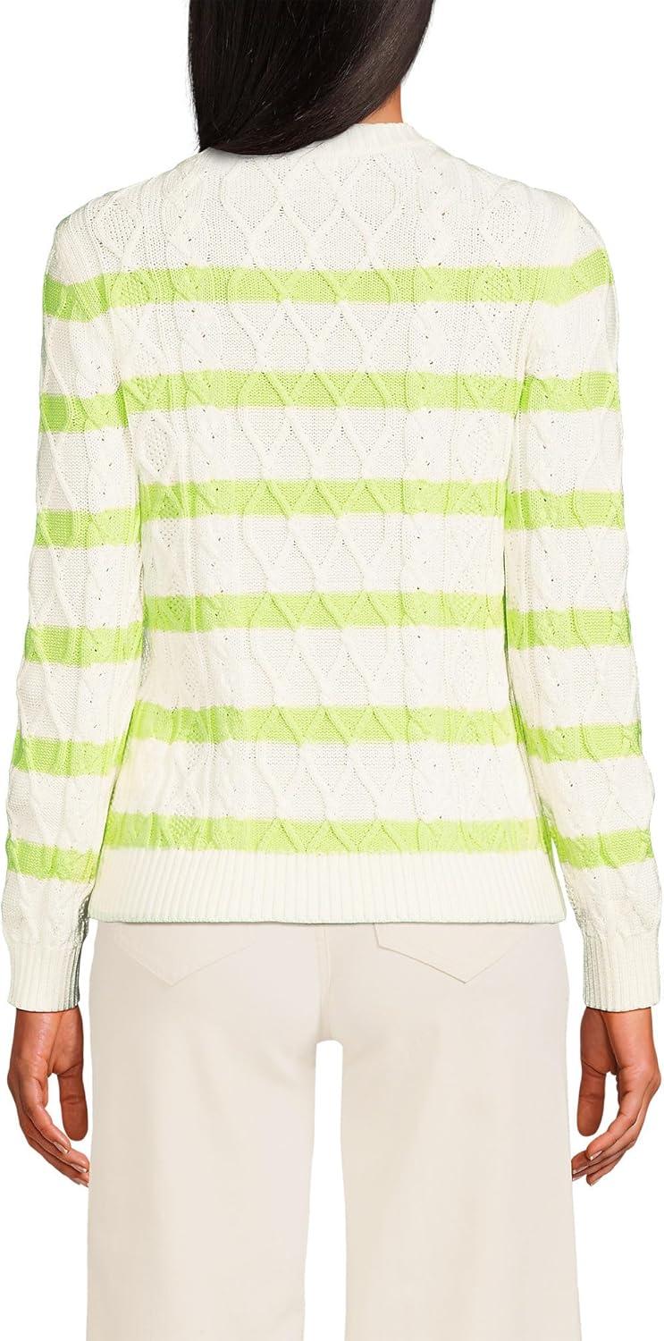 Lands’ End Women’s Cotton Drifter Crew Cable Pullover Sweater(Ivory/Limoncello Gulf Stripe)