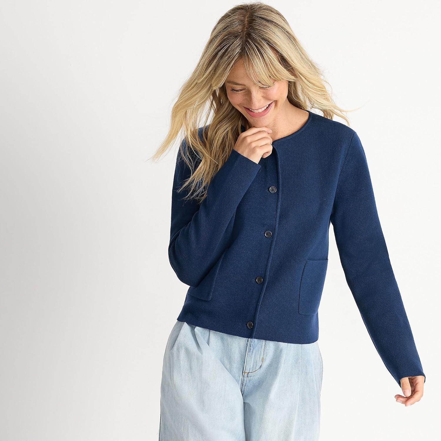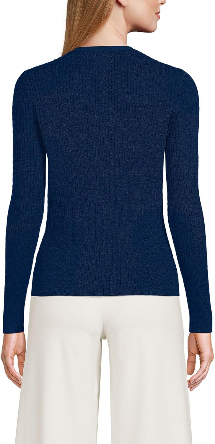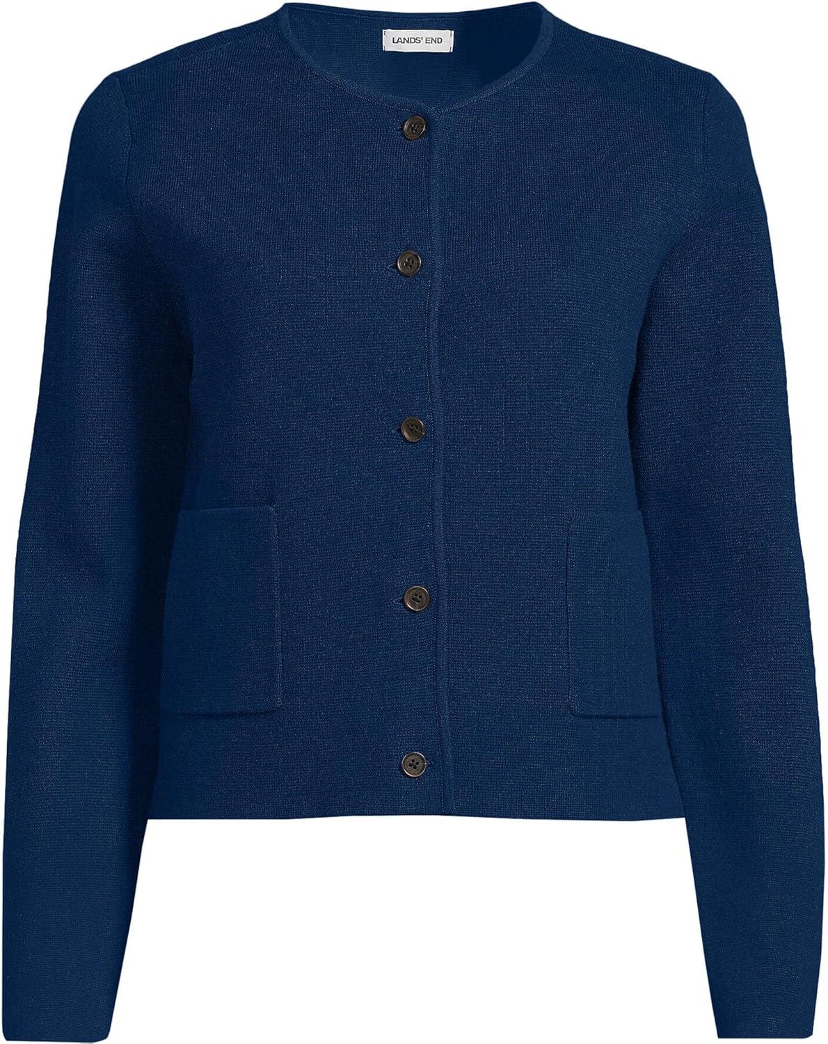 Lands’ End Women’s Fine Gauge Cotton Milano Blazer Sweater(Deep Sea Navy)