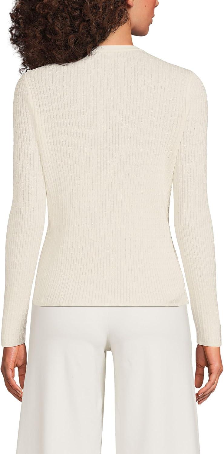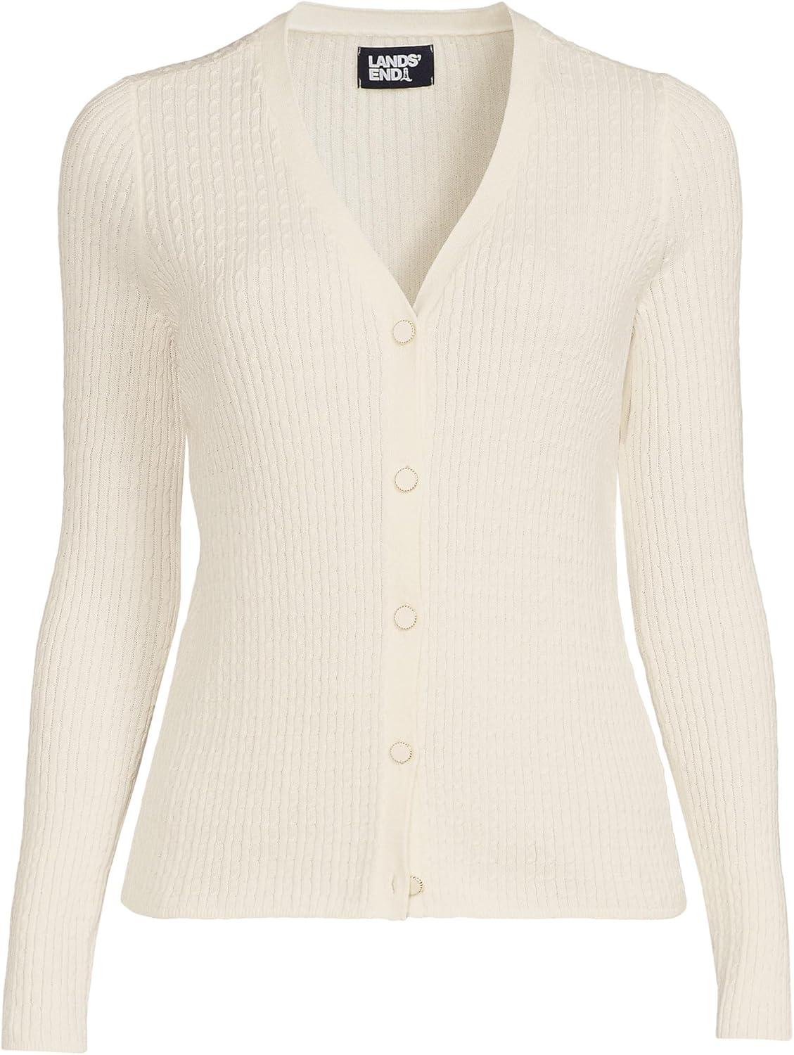 Lands’ End Women’s Drifter Baby Cable Vneck Cardigan Sweater(Fresh Ivory)