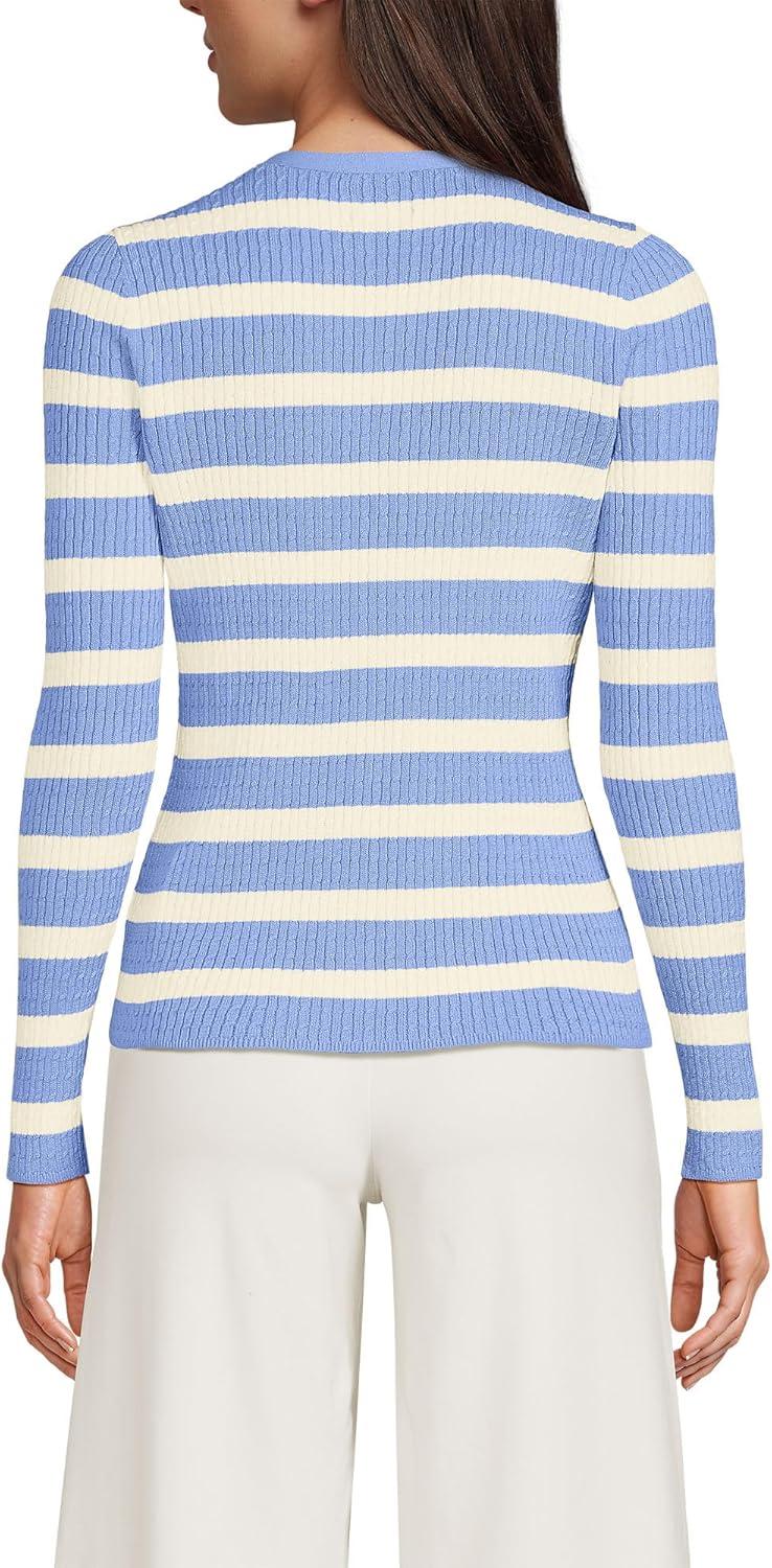 Lands’ End Women’s Drifter Raglan Sleeve Easy Fit Sweater(Fresh Ivory/Blue Stripe)