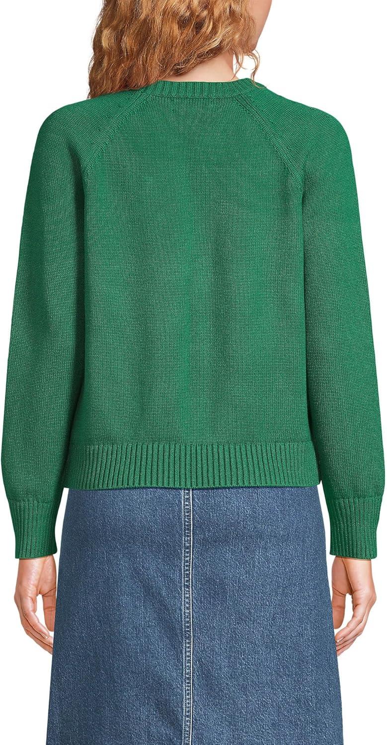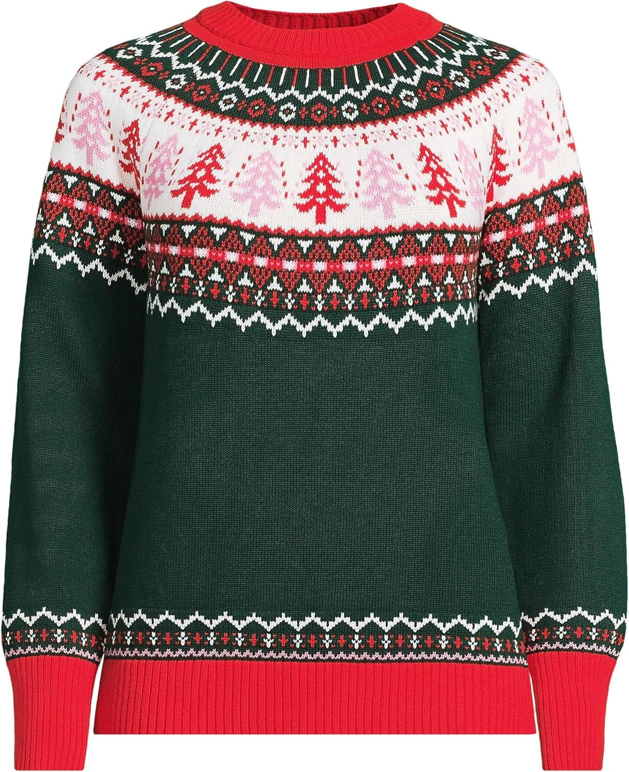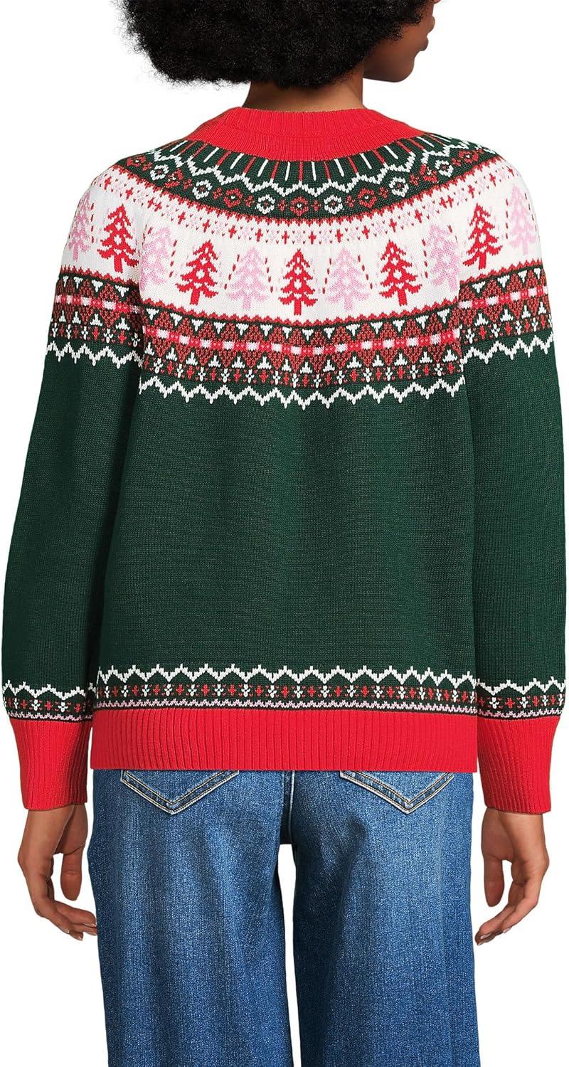 Lands’ End Women’s Drifter Jacquard Raglan Crew Neck Sweater(Trees/Green and Red)