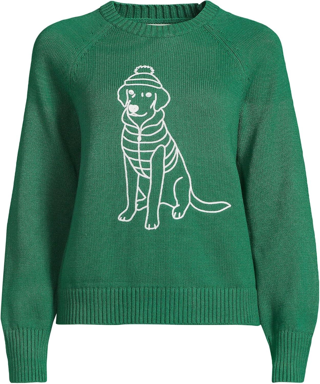 Lands’ End Women’s Drifter Jacquard Raglan Crew Neck Sweater(Winter Dog/Green)