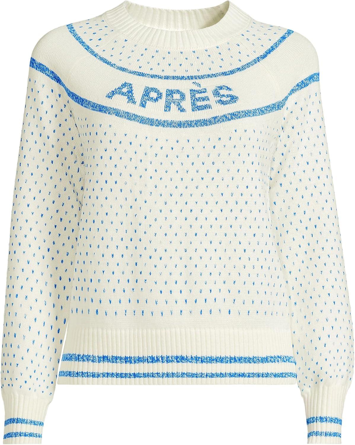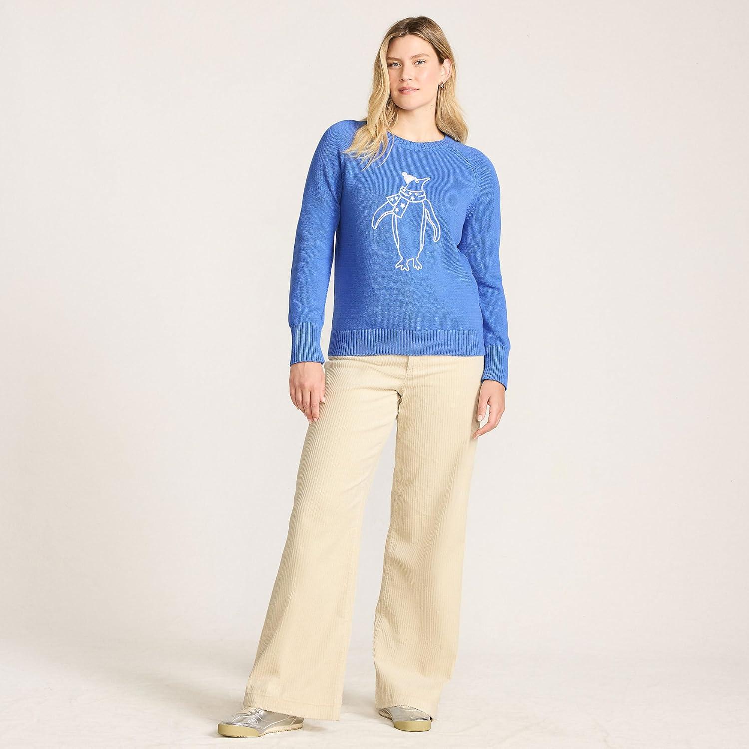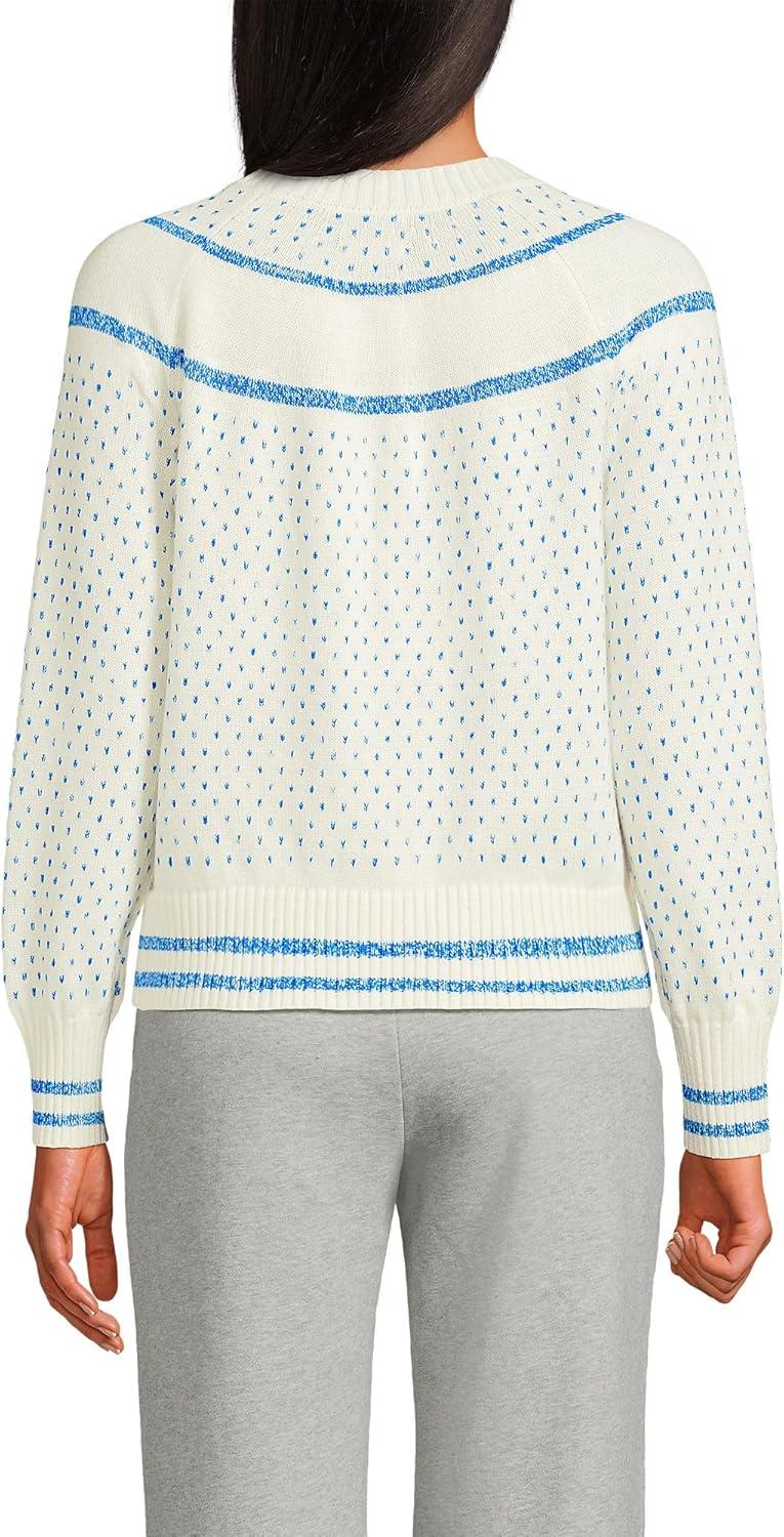 Lands’ End Women’s Drifter Jacquard Raglan Crew Neck Sweater(Winter Penguin/Blue)
