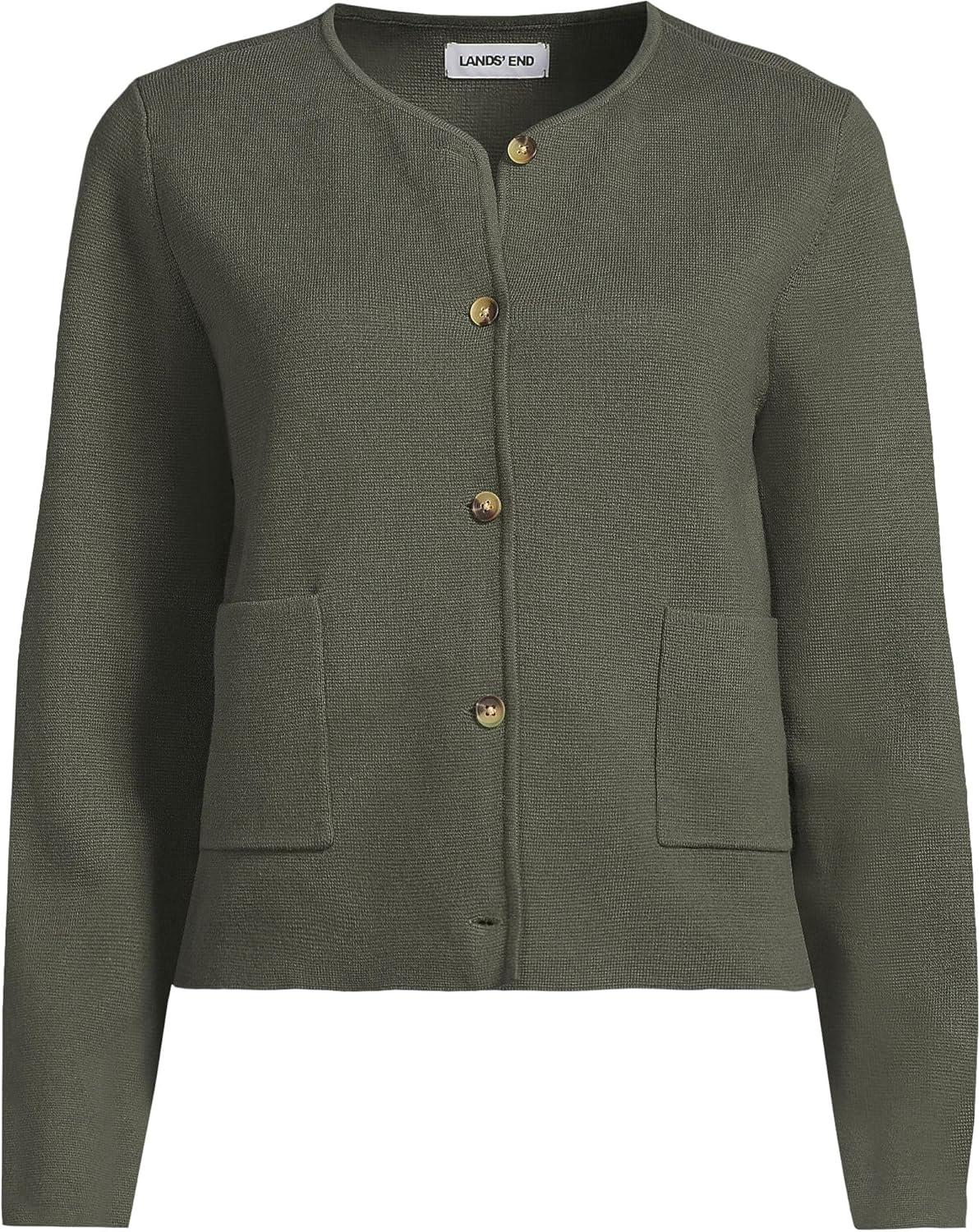 Lands’ End Women’s Fine Gauge Cotton Milano Blazer Sweater(Forest Moss)