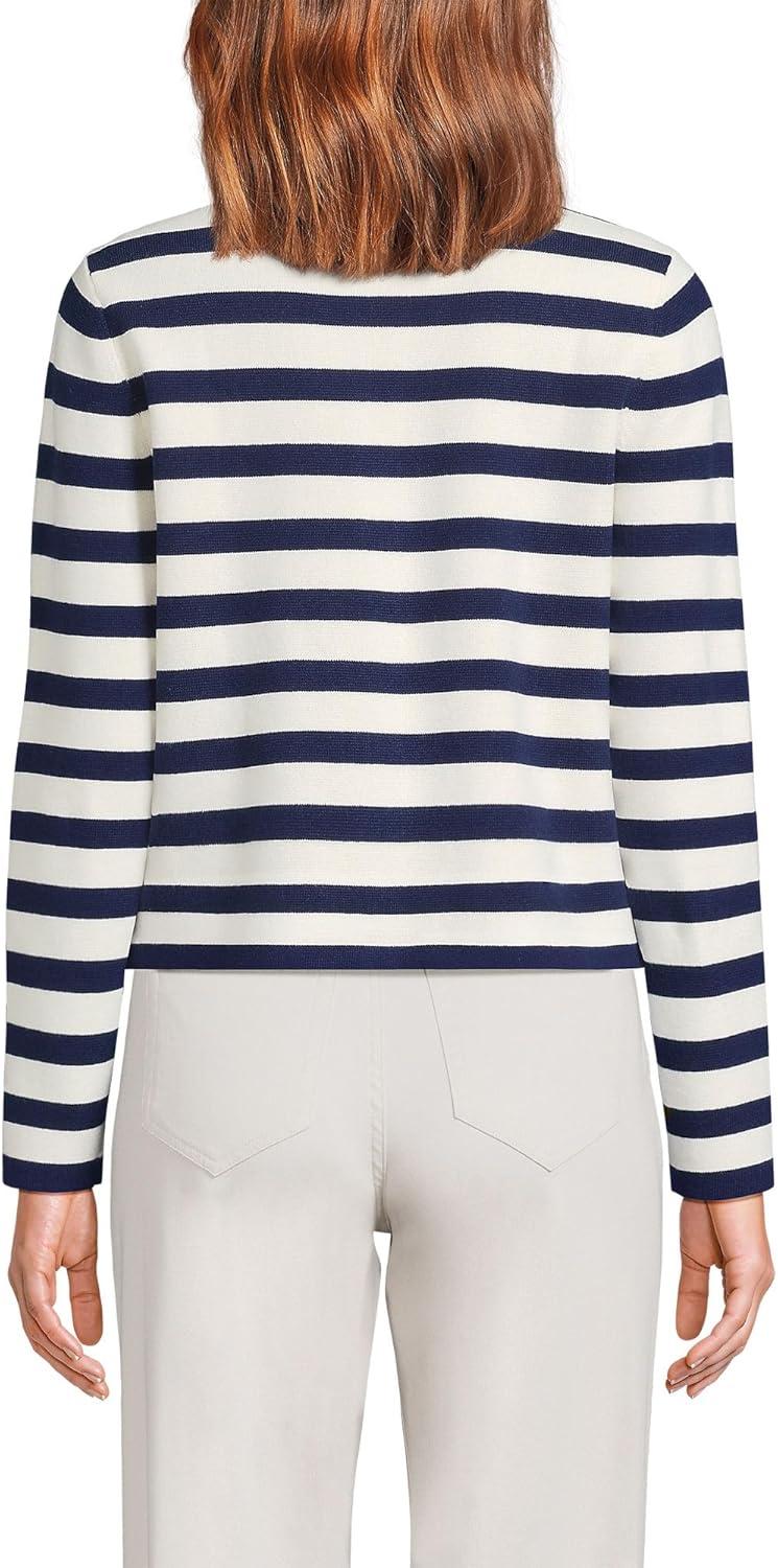 Lands’ End Women’s Fine Gauge Cotton Milano Blazer Sweater(Fresh Ivory/Navy Breton Stripe)