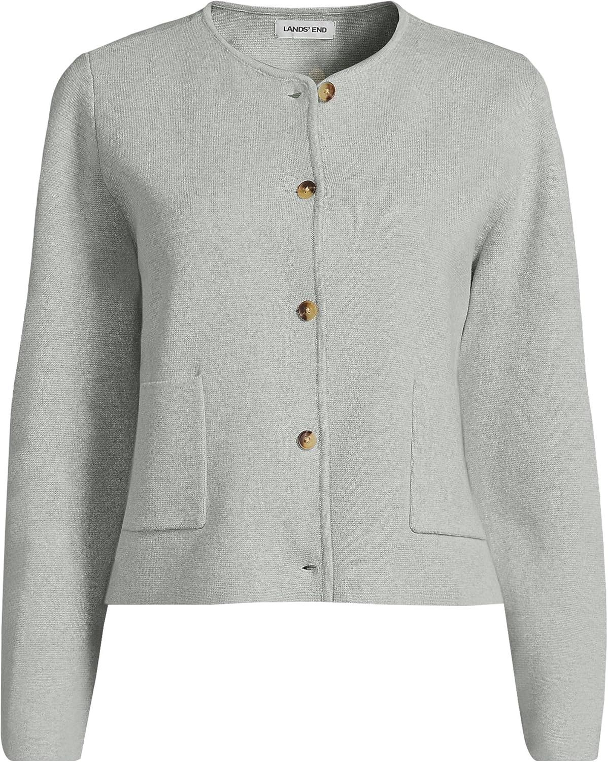 Lands’ End Women’s Fine Gauge Cotton Milano Blazer Sweater(Gray Heather)