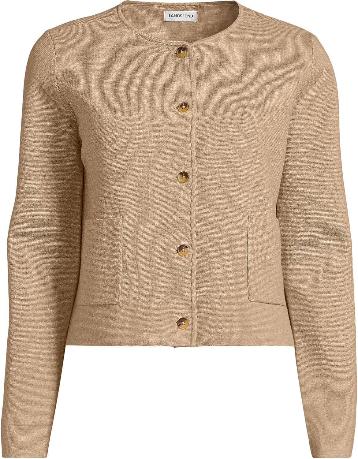 Lands’ End Women’s Fine Gauge Cotton Milano Blazer Sweater(Vicuna Heather)