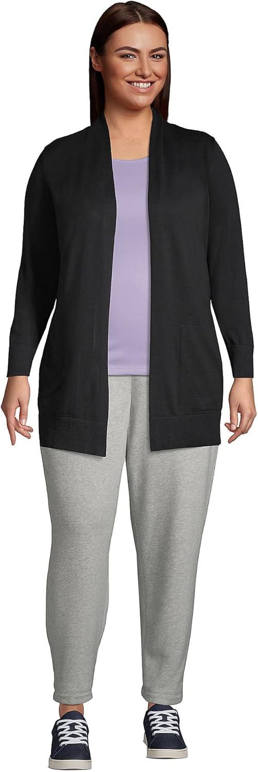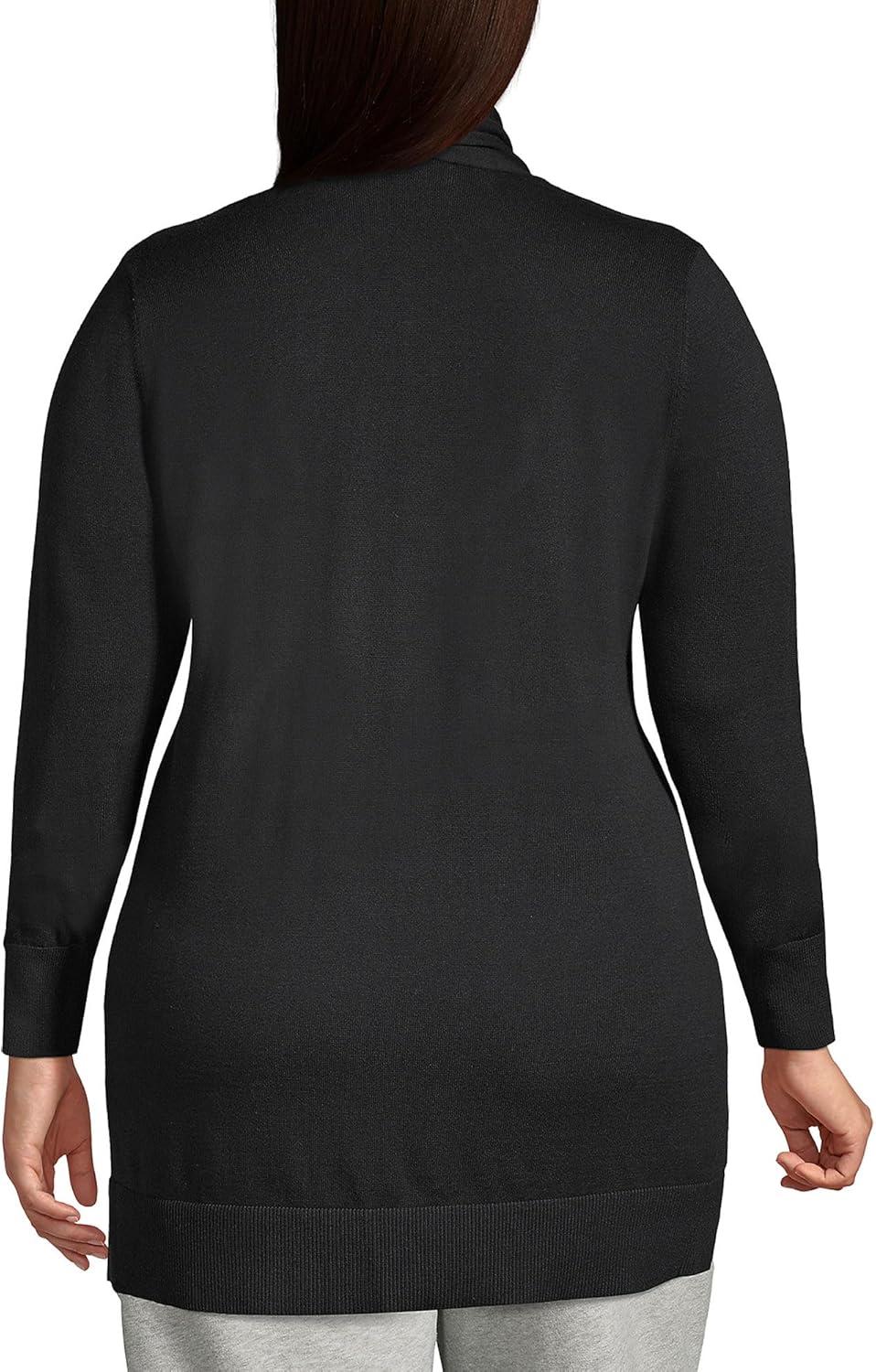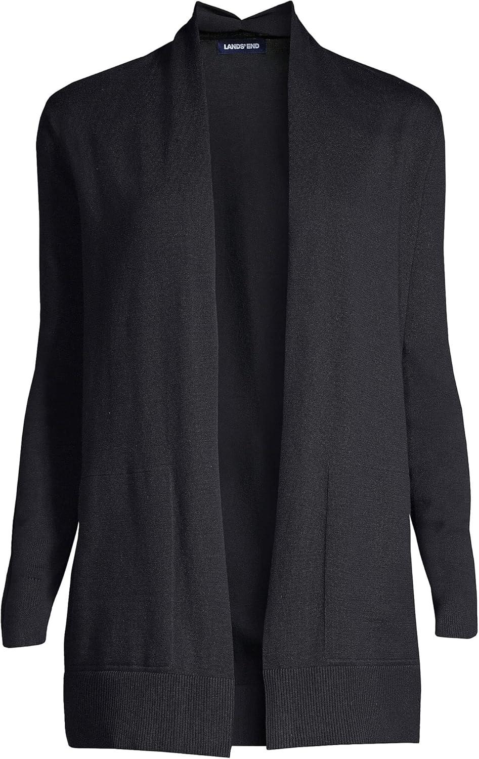 Lands’ End Women’s Long Sleeve Open Long Cardigan Sweater(Black)
