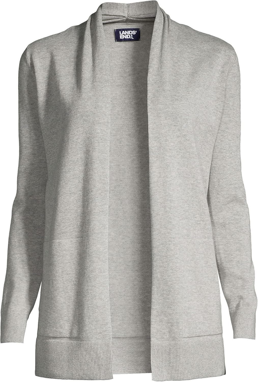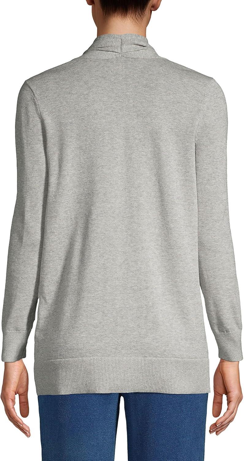 Lands’ End Women’s Long Sleeve Open Long Cardigan Sweater(Gray Heather)