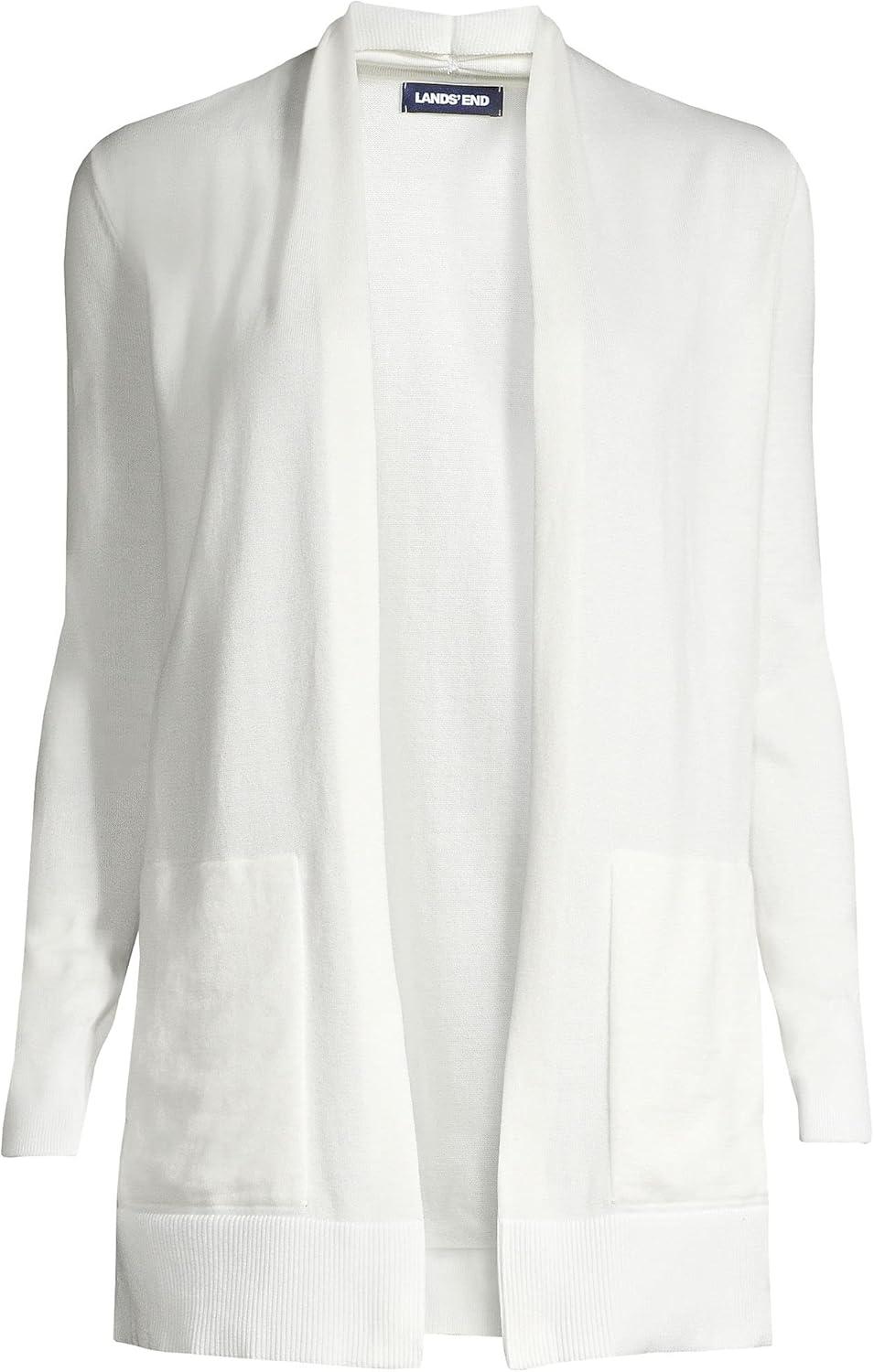 Lands’ End Women’s Long Sleeve Open Long Cardigan Sweater(Ivory)