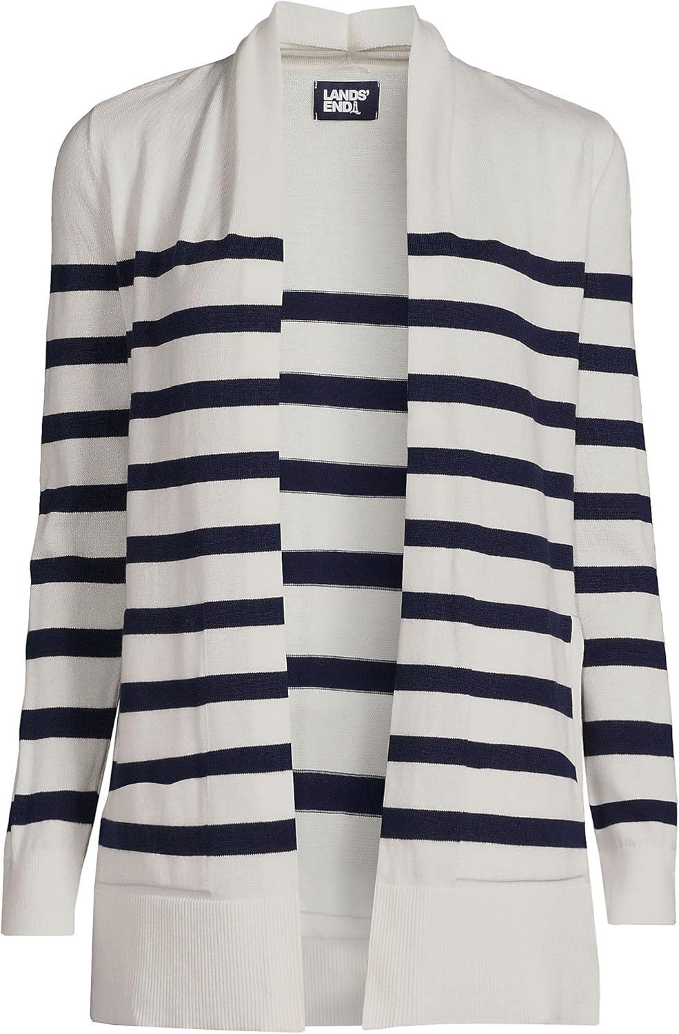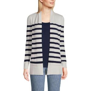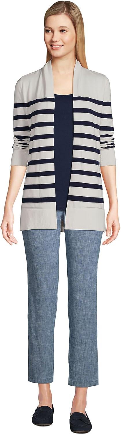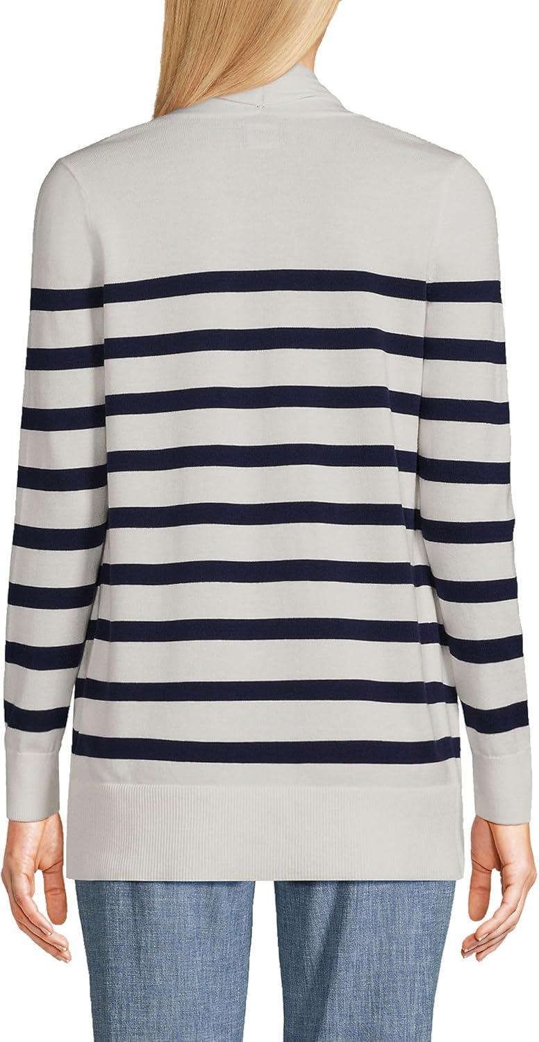 Lands’ End Women’s Long Sleeve Open Long Cardigan Sweater(Ivory Placed Stripe)