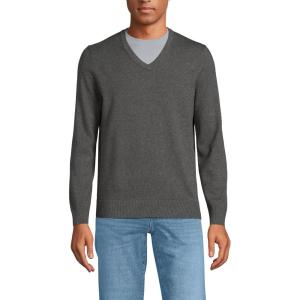 Lands’ End Men’s Fine Gauge Cashmere V-Neck Sweater(Charcoal Heather)