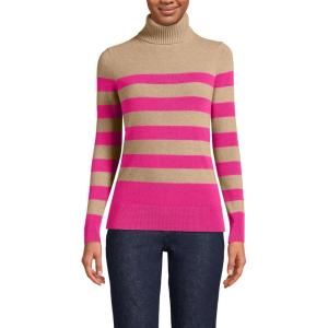 Lands’ End Women’s Cashmere Turtleneck Sweater(Intense Rose Vicuna Stripe)