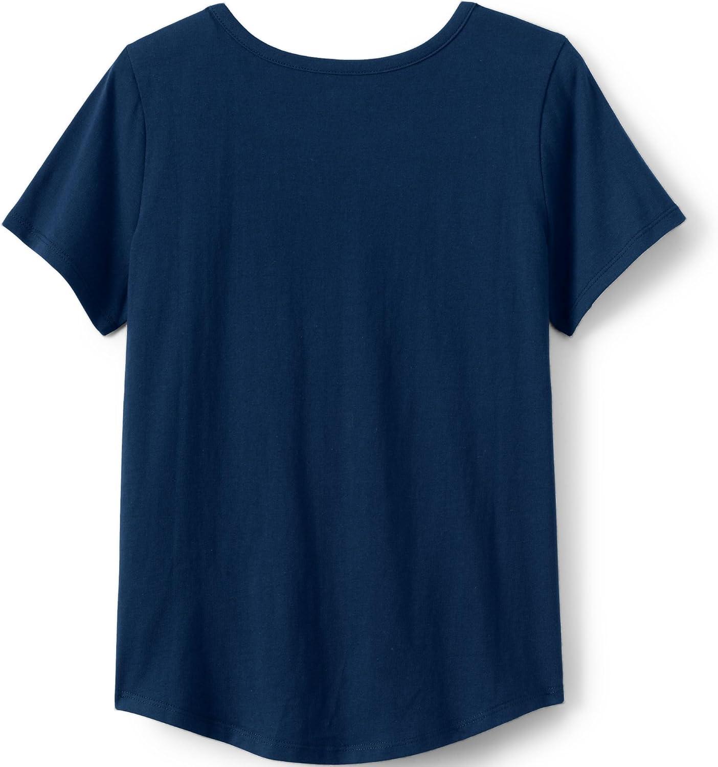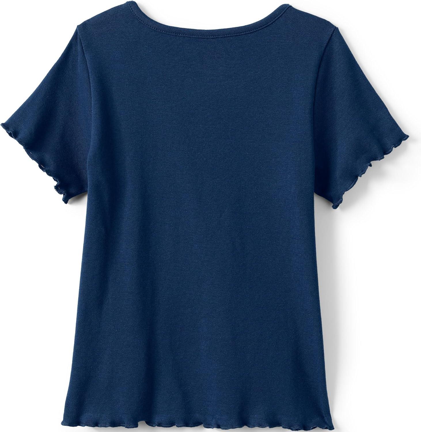 Lands’ End Girls Short Sleeve Ribbed Henley T-Shirt(Deep Sea Navy)