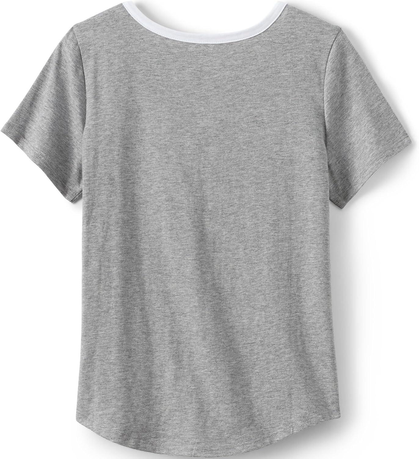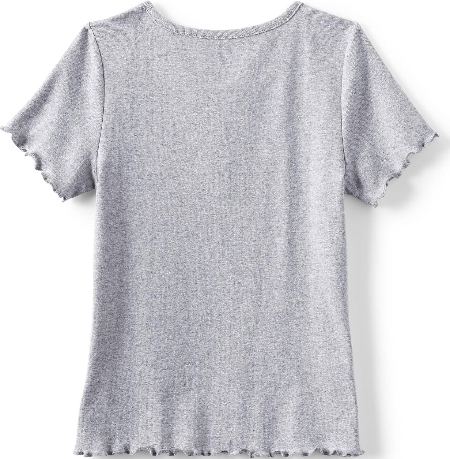 Lands’ End Girls Short Sleeve Ribbed Henley T-Shirt(Gray Heather)