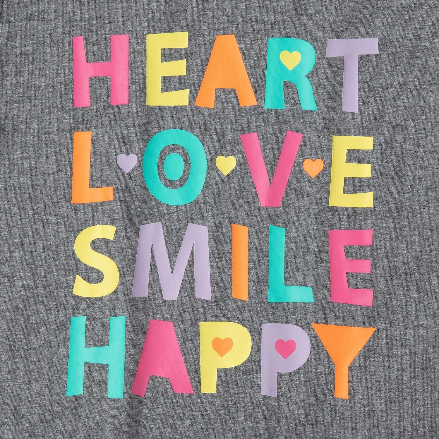 Lands’ End Girls Graphic Tee(Heart Happy Charcoal Heather)