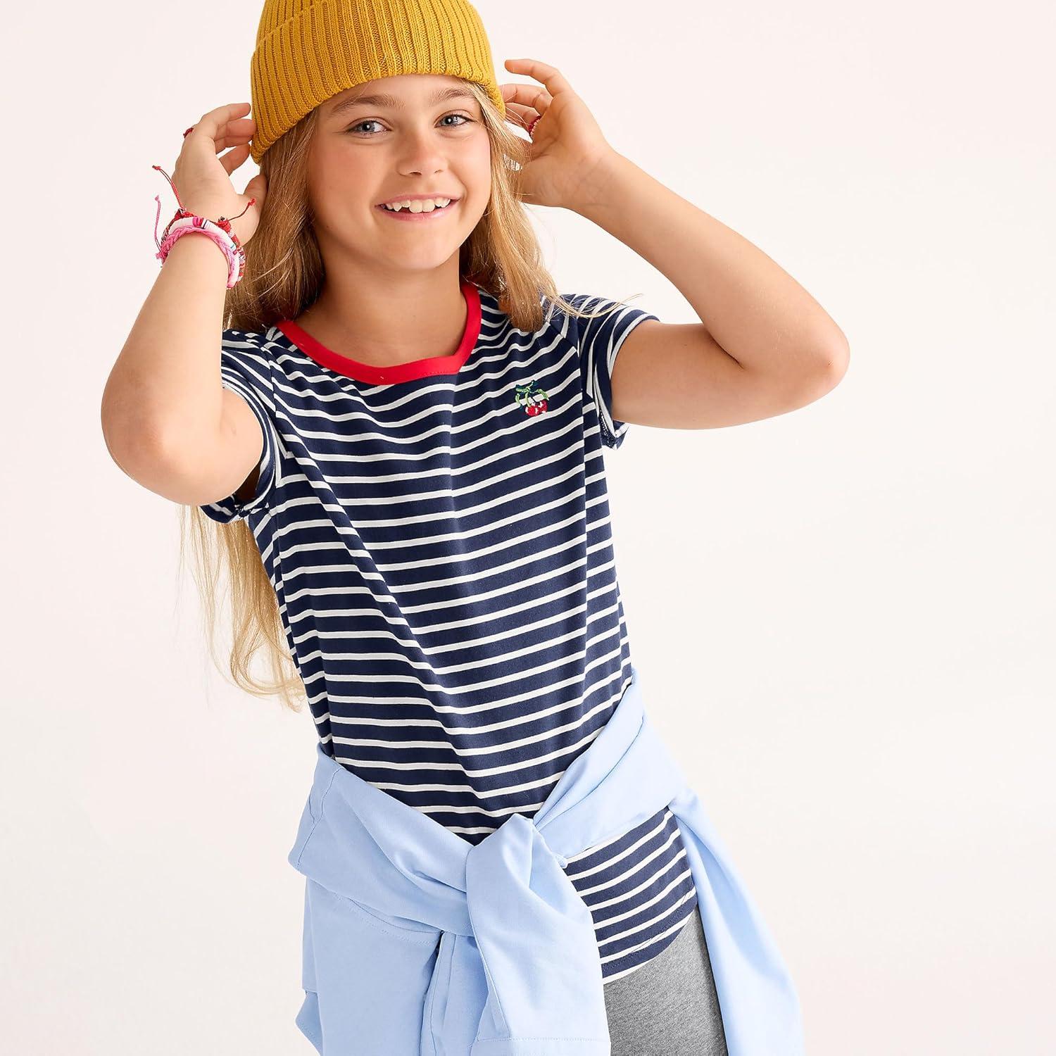 Lands’ End Girls Short Sleeve Ribbed Henley T-Shirt(Fruity Rainbows)