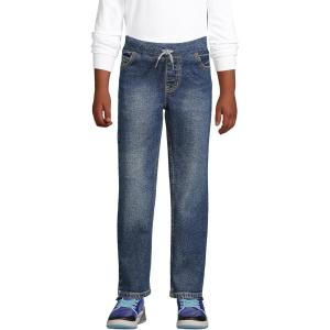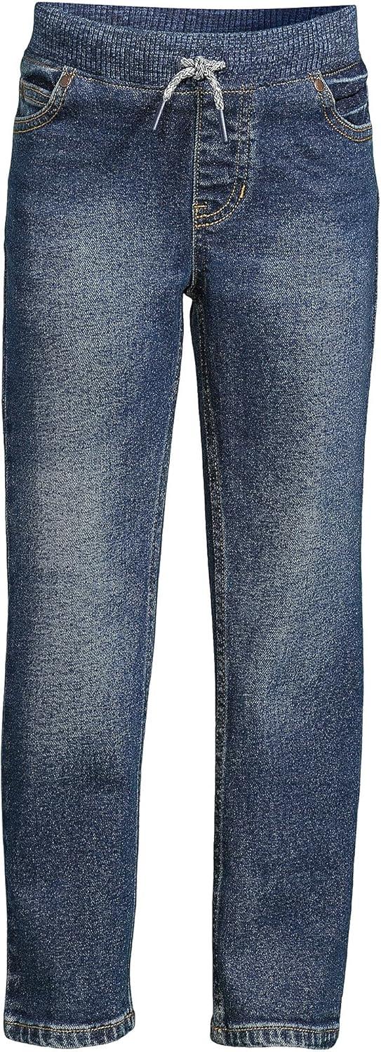 Lands’ End Boys Iron Knee Stretch Pull On Jeans(Dark Wash Denim)