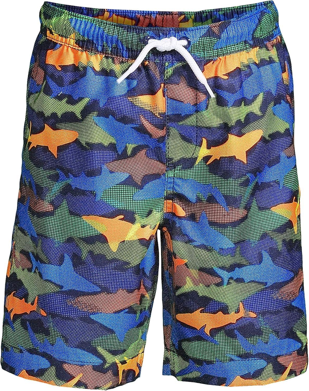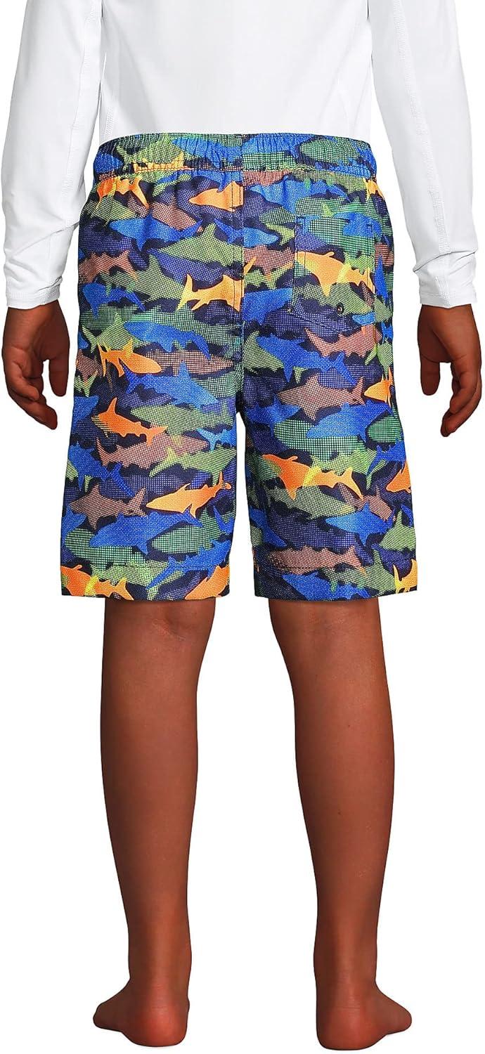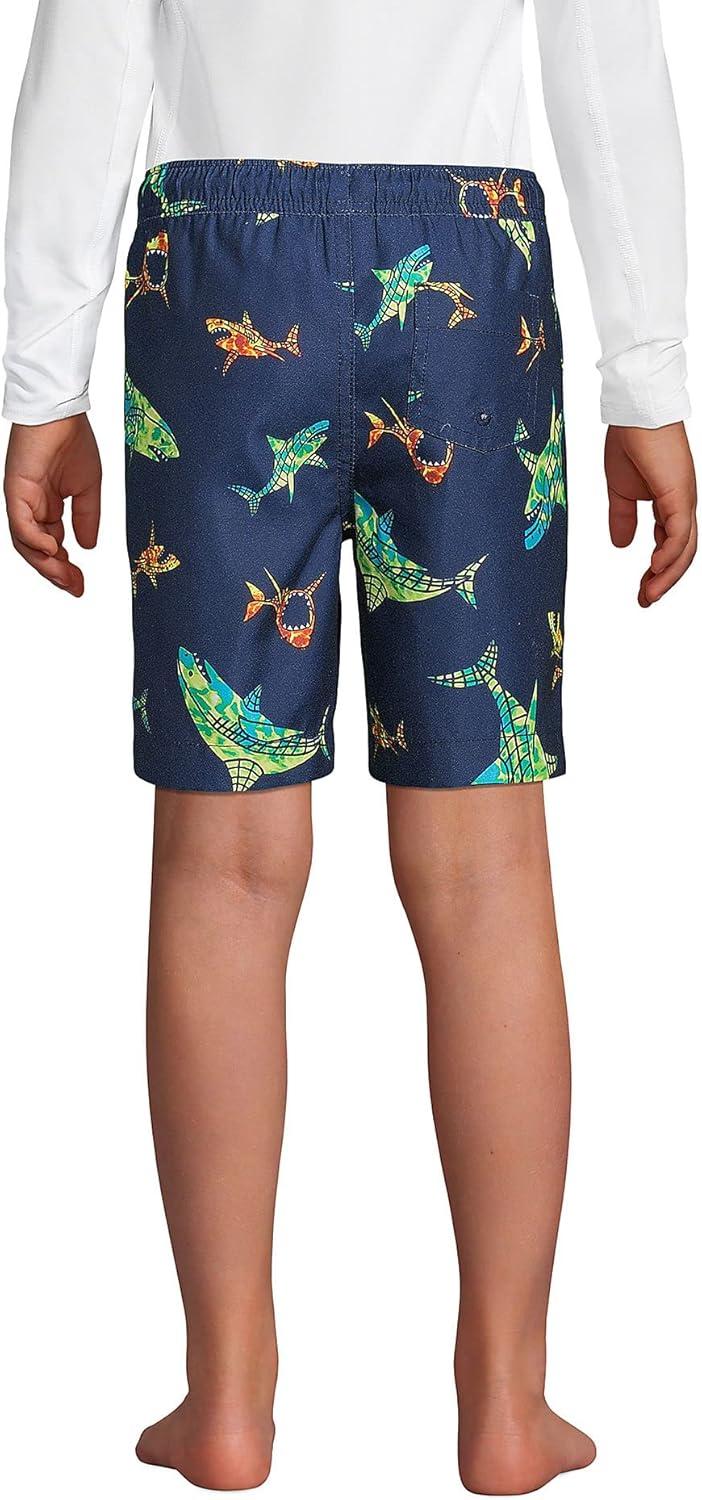 Lands’ End Boys Active Stretch Quick Dry UPF 50 Swim Trunk(Navy Multi Sharks)
