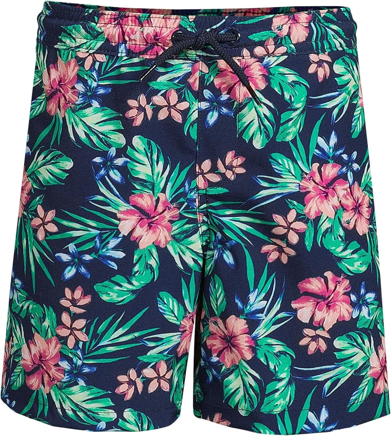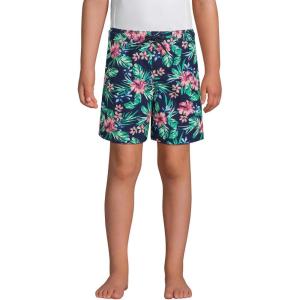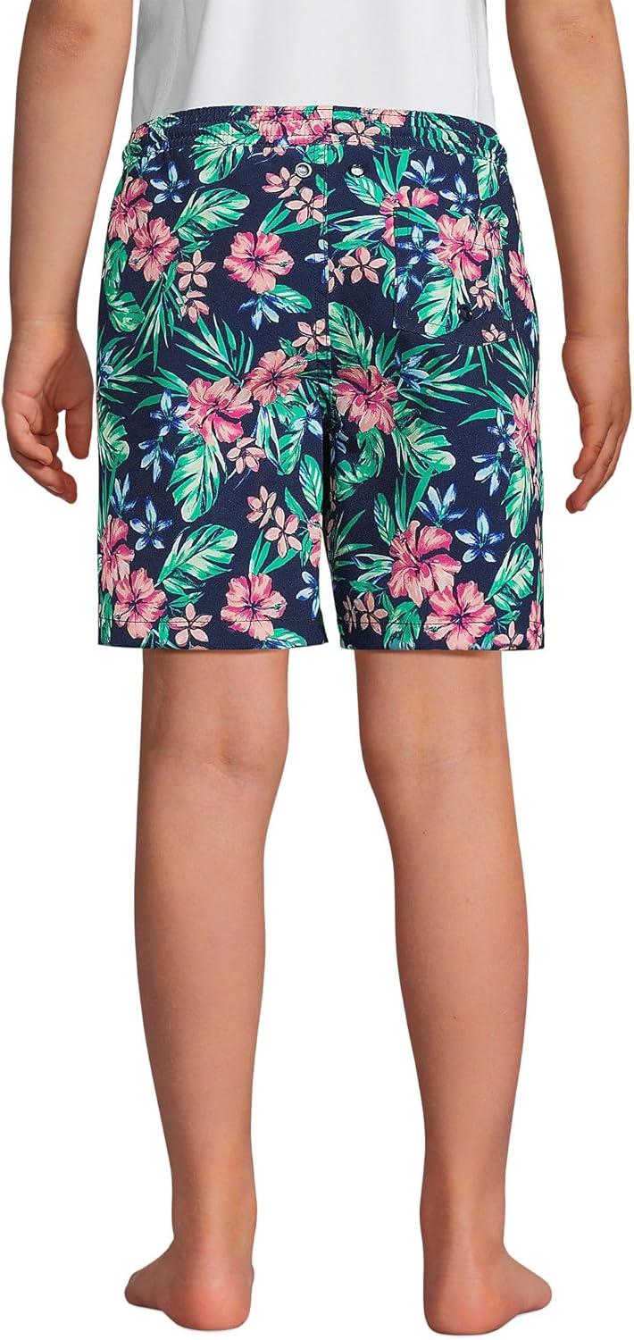 Lands’ End Boys Active Stretch Quick Dry UPF 50 Swim Trunk(Deep Sea Navy/Rosella Floral)