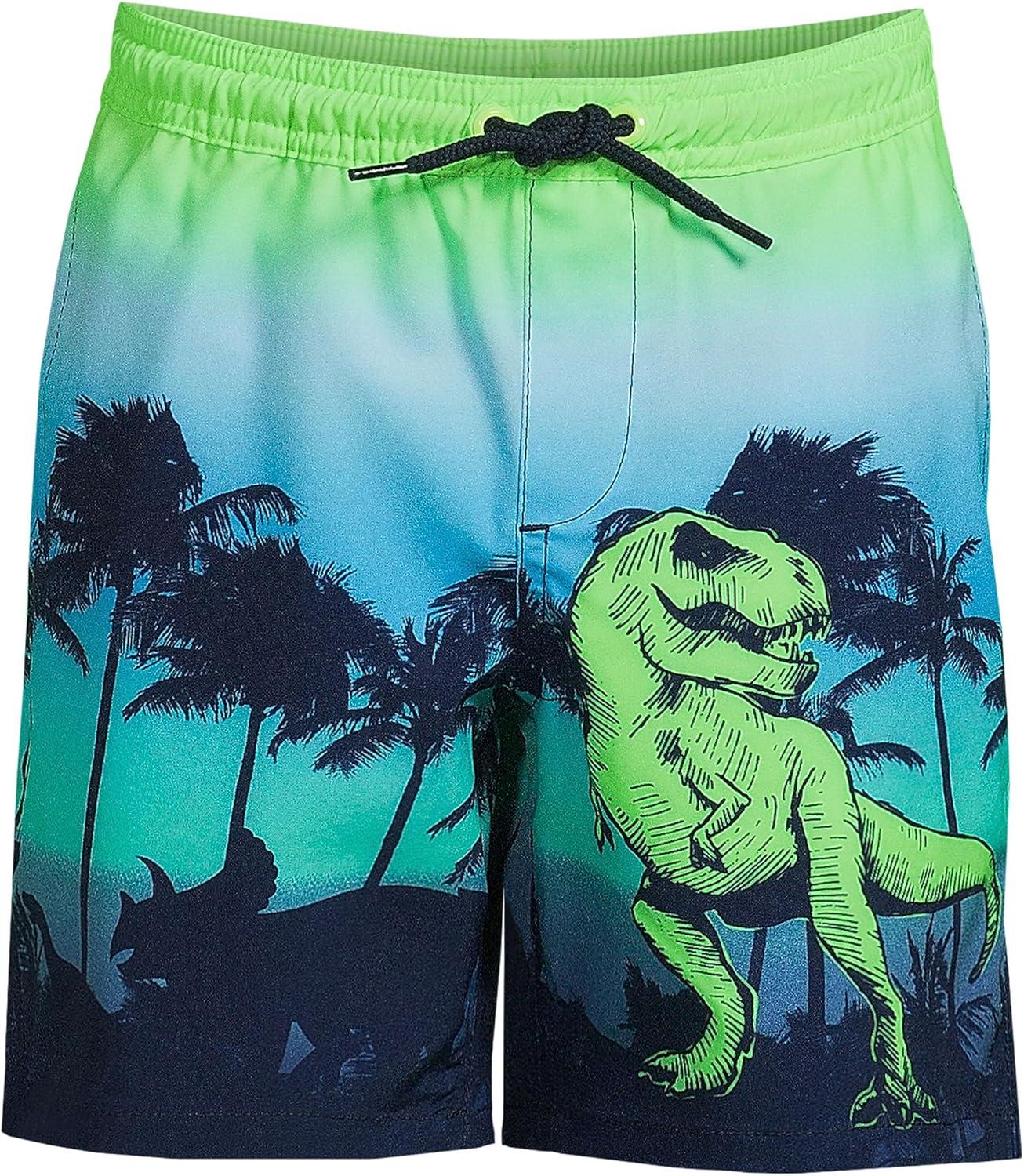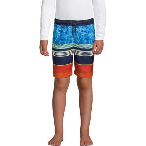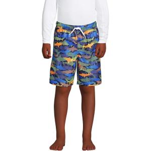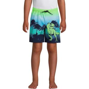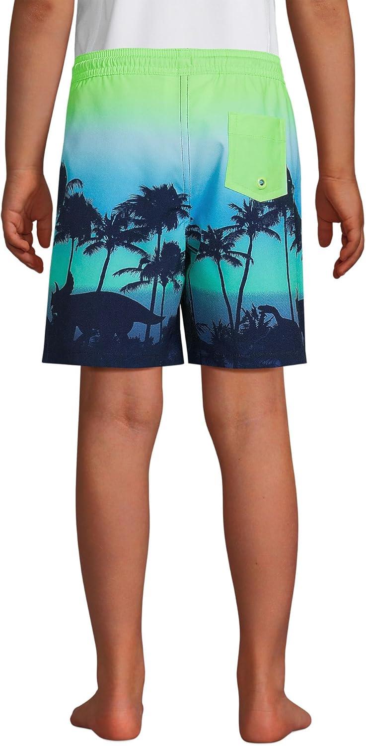 Lands’ End Boys Active Stretch Quick Dry UPF 50 Swim Trunk(Navy Sunset Dinosaur)