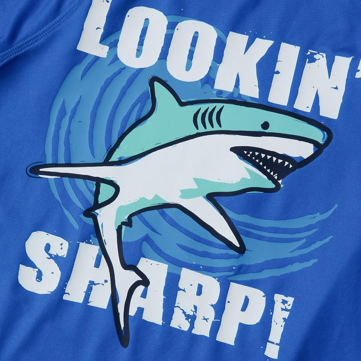 Lands’ End Boys Husky Short Sleeve UPF 50 Sun Protection Rash Guard(Electric Blue Shark)