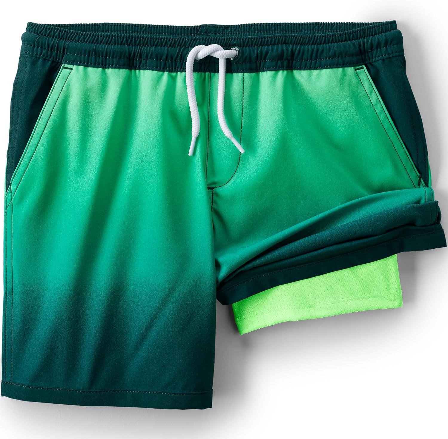 Lands’ End Boys Hydroliner Quick Dry UPF 50 Swim Trunk(Deep Balsam/Wintergreen Ombre)